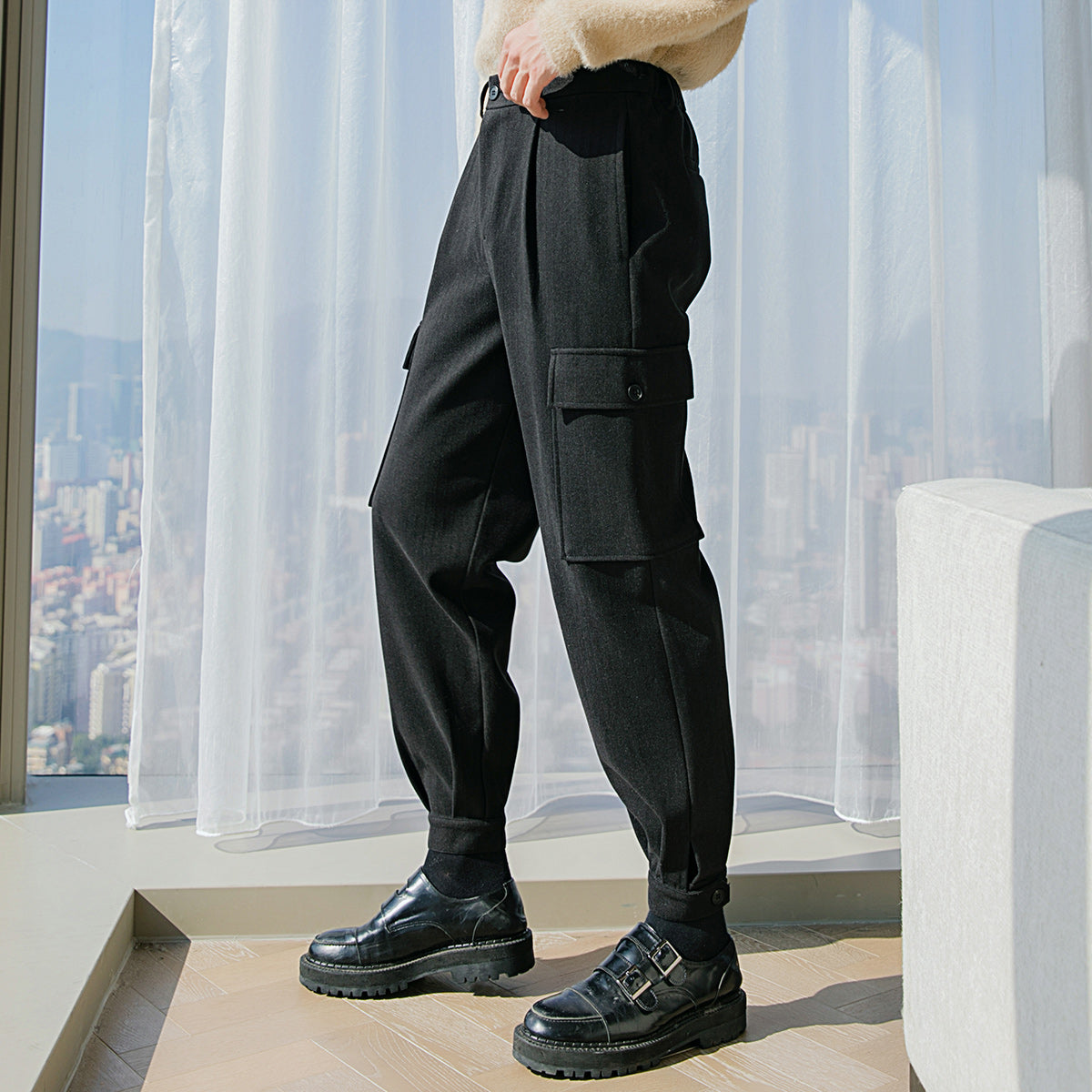 CHIC ERRO Chic Erro winter new overalls trendy loose casual pants pure color Korean version of the wild tie trousers men