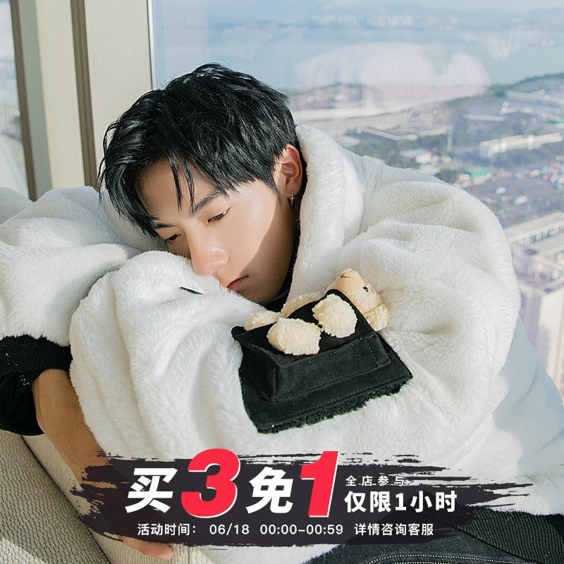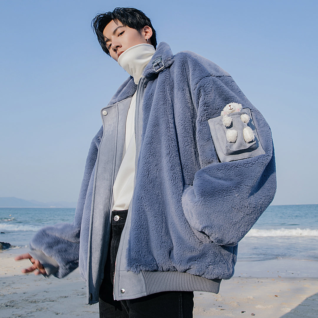 CHIC ERRO Chic Erro winter new stand-up collar cotton-padded jacket design sense cute bear loose casual double-sided wear jacket men