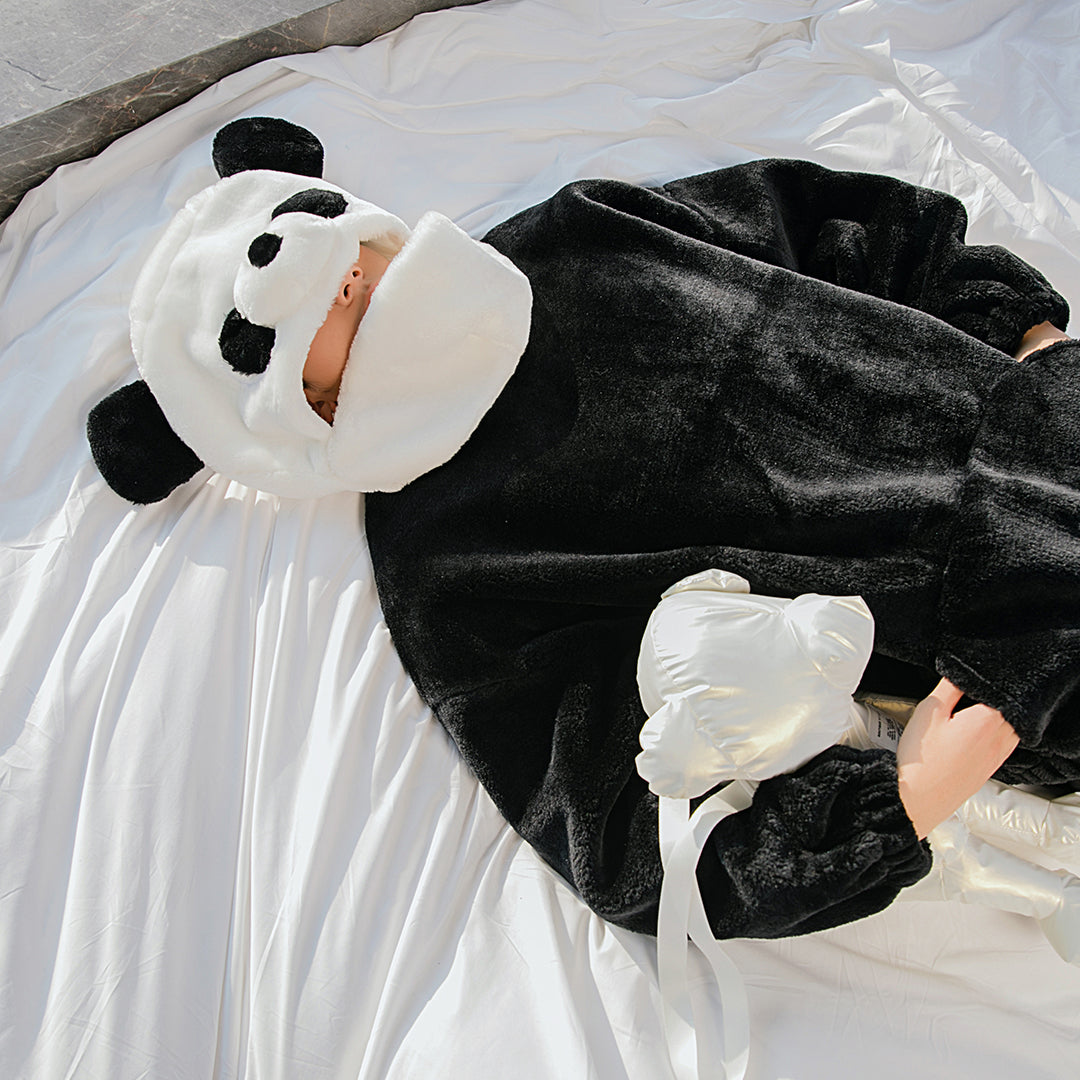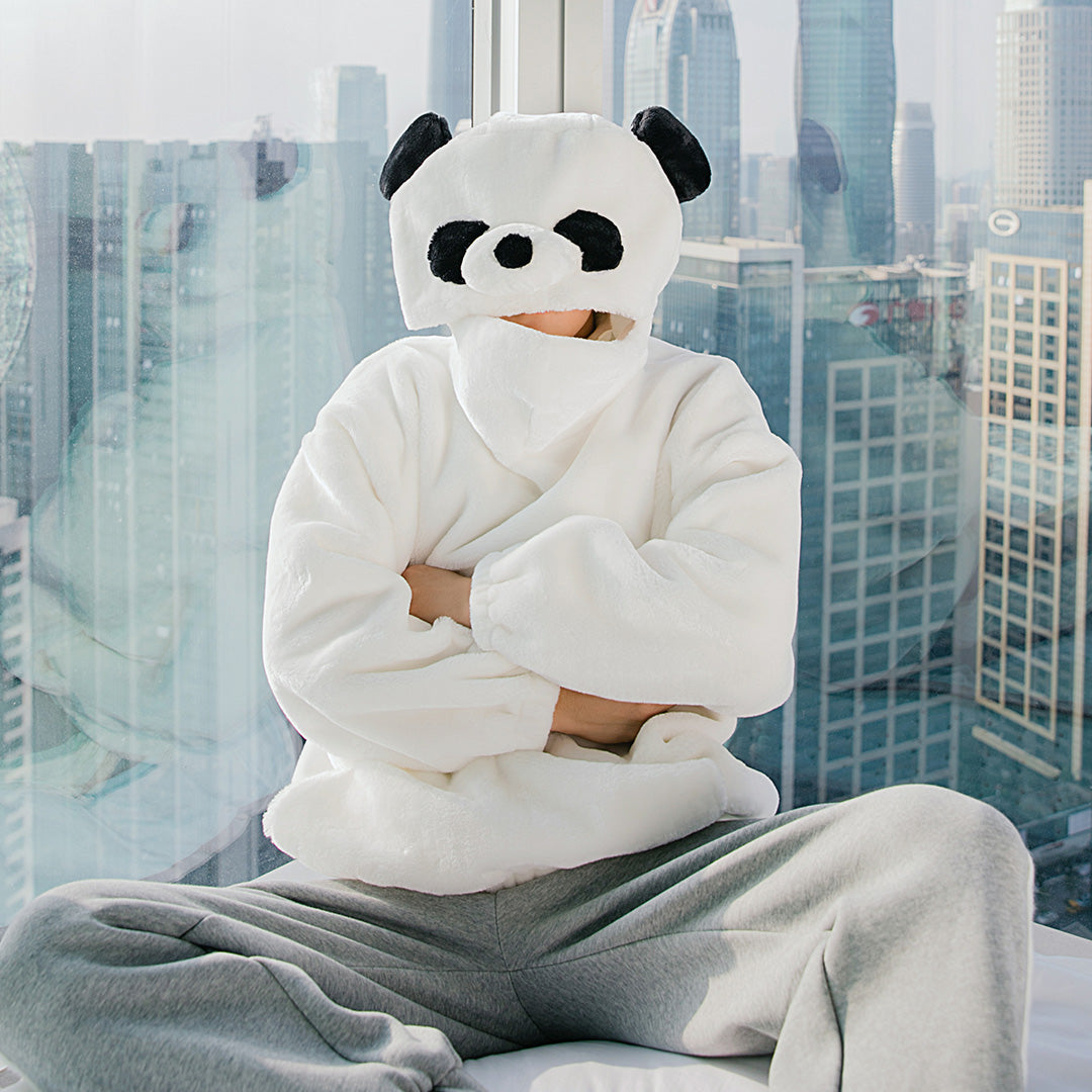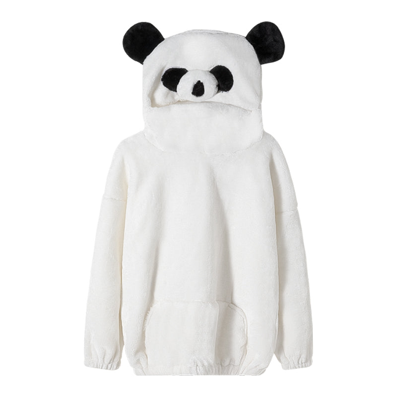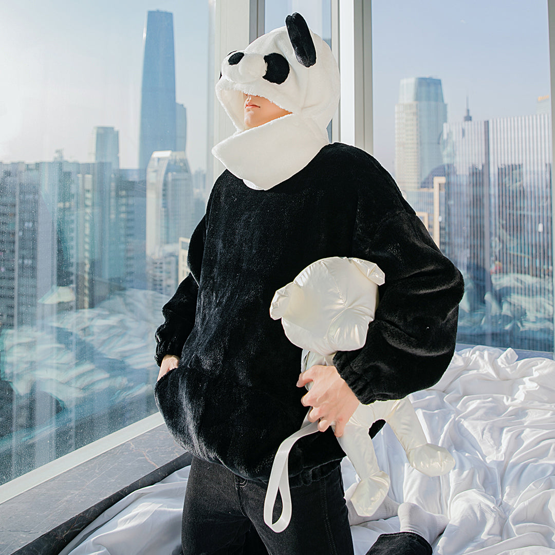 CHIC ERRO Chic Erro winter new thick rabbit velvet hooded sweater fun panda hat cute casual loose top