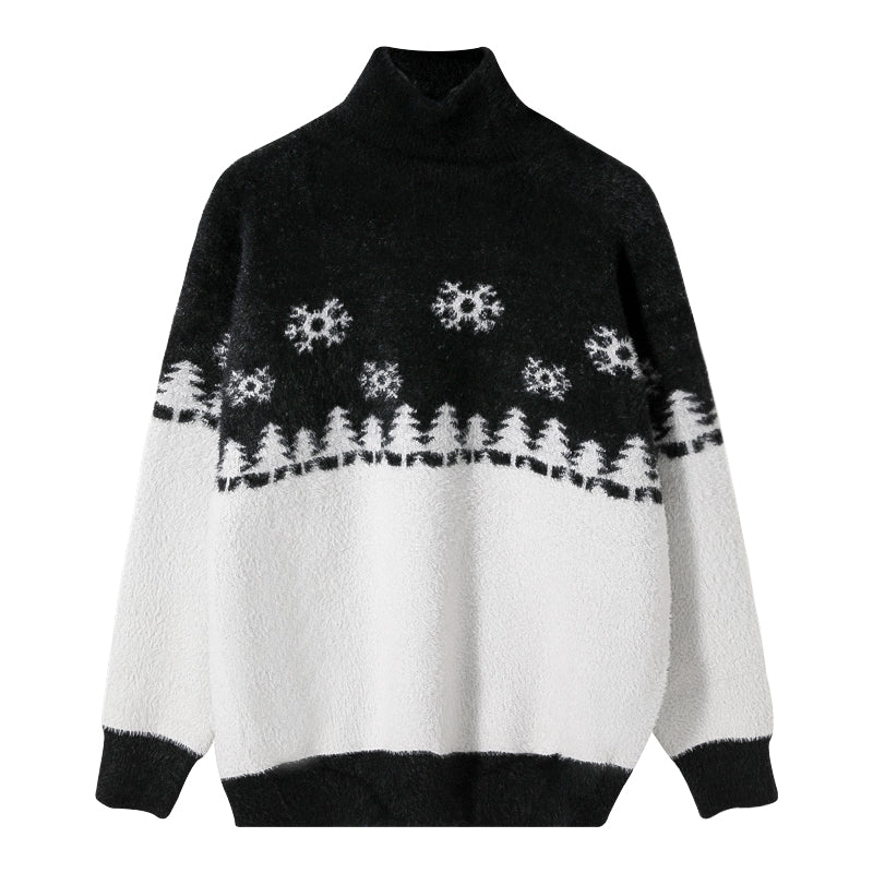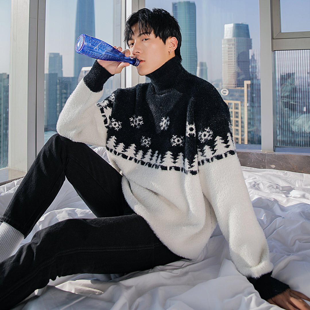CHIC ERRO Chic Erro winter new turtleneck snowflake sweater contrast stitching Korean trend loose handsome sweater