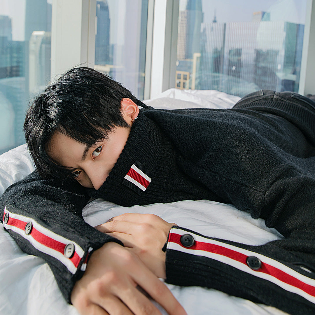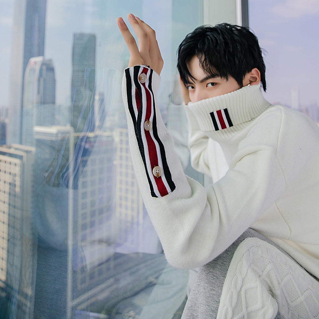 CHIC ERRO Chic Erro winter new turtleneck sweater contrast stitching Korean handsome loose thick men's sweater