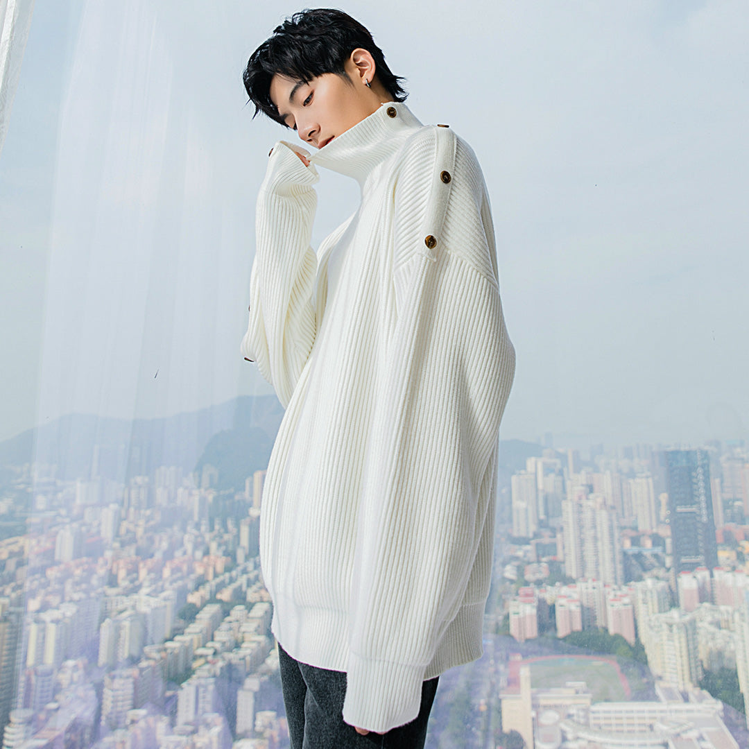 CHIC ERRO Chic Erro winter new turtleneck sweater design sense decorative buckle trend loose handsome men's sweater