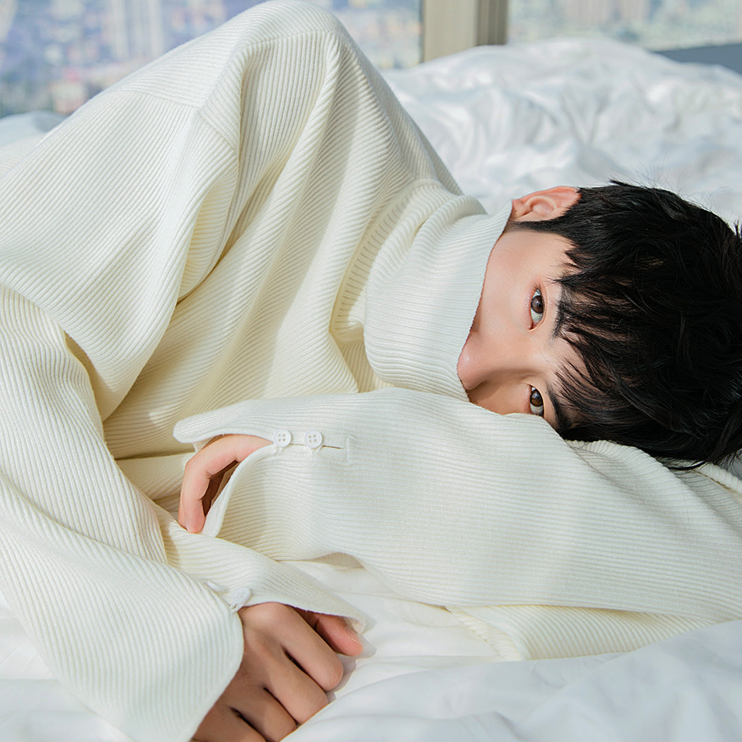 CHIC ERRO Chic Erro winter new turtleneck sweater design sense of slit loose loose trend youth bottoming sweater