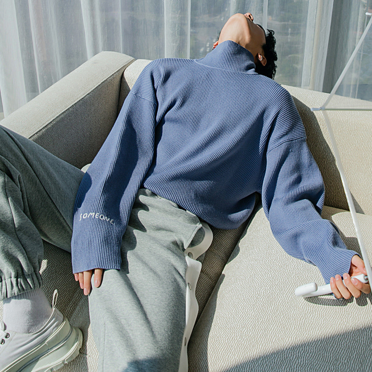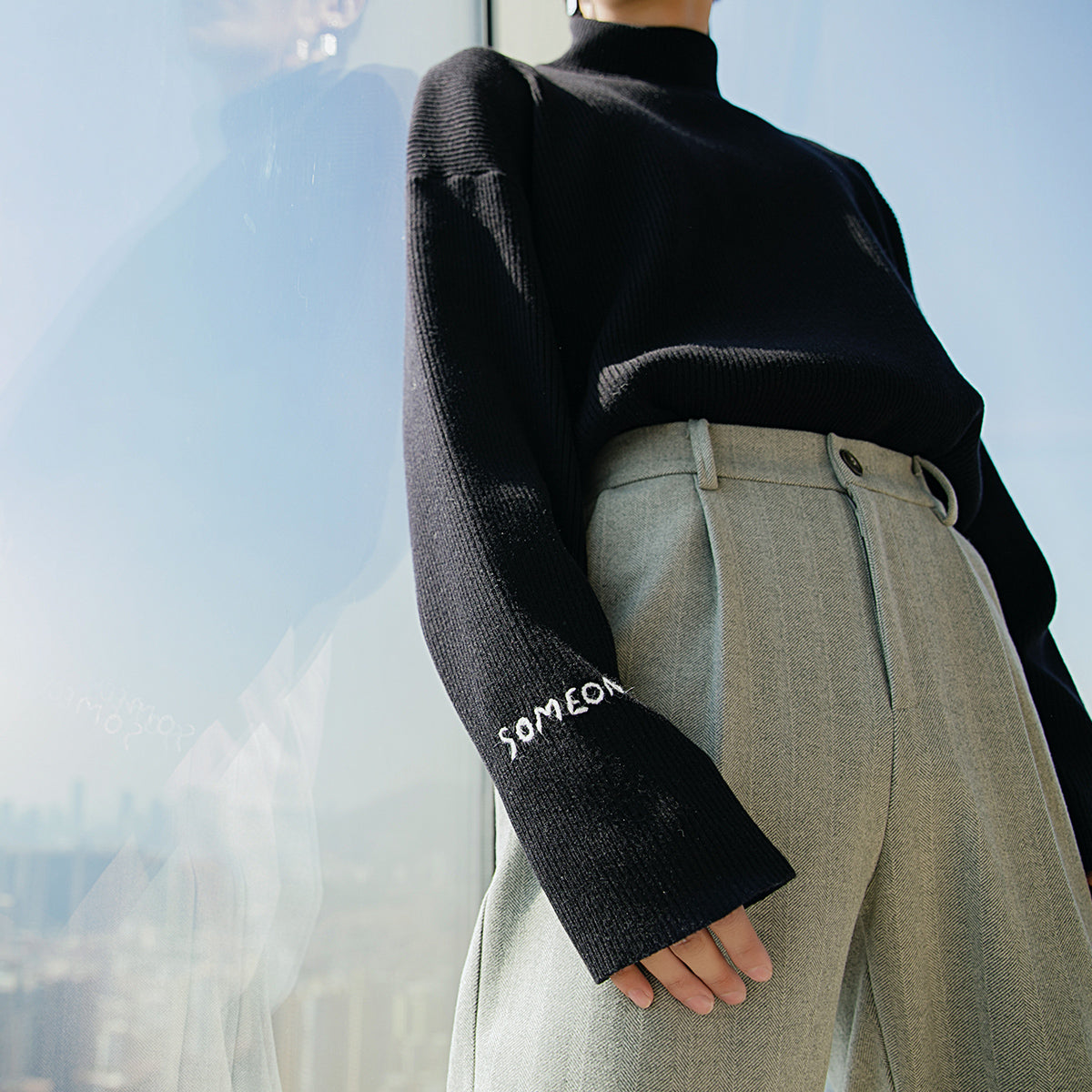 CHIC ERRO Chic Erro winter new youth high-neck sweater embroidery letters loose casual men's bottoming shirt
