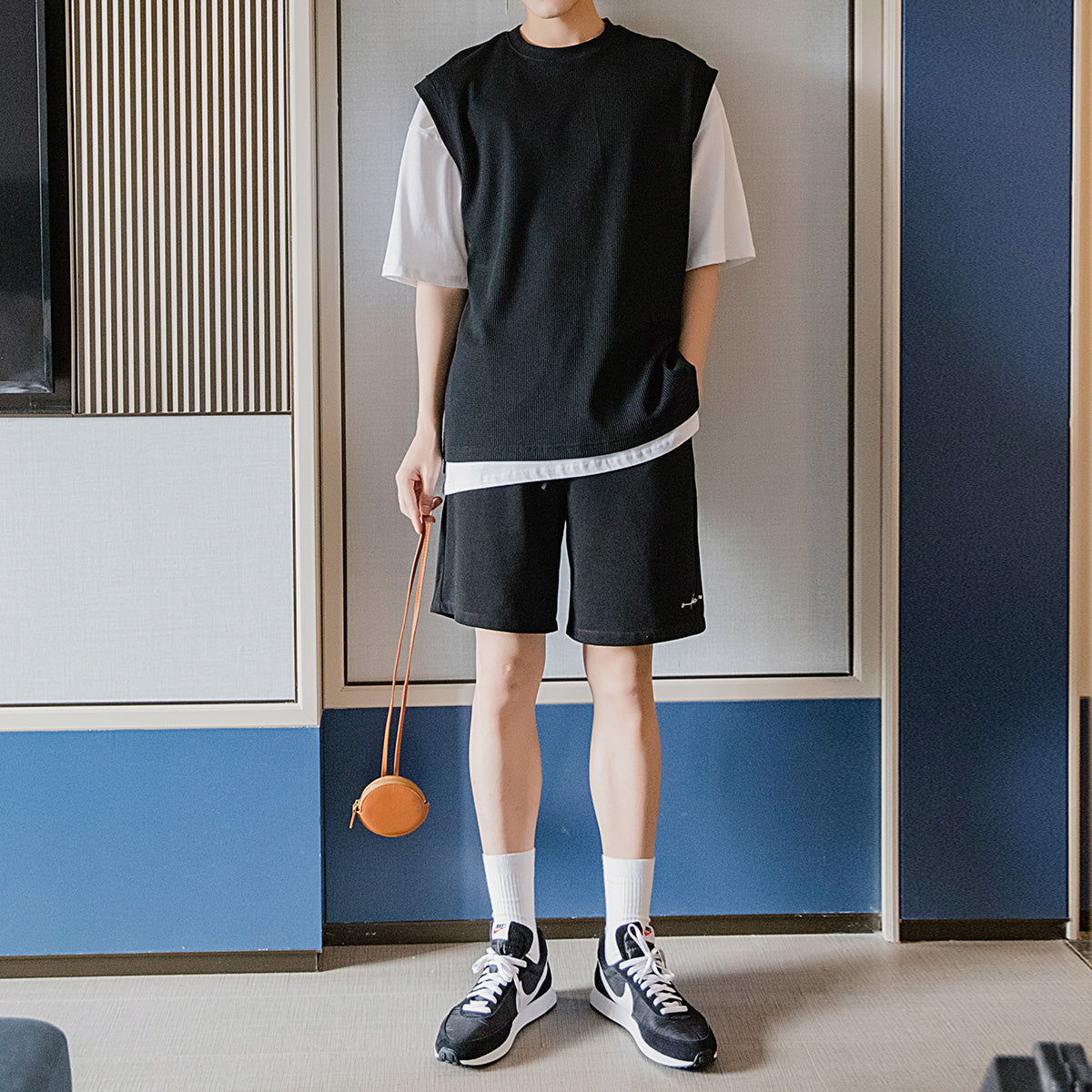 CHIC ERRO Embroidered five-point pants men's Korean style trend loose straight men's black casual shorts