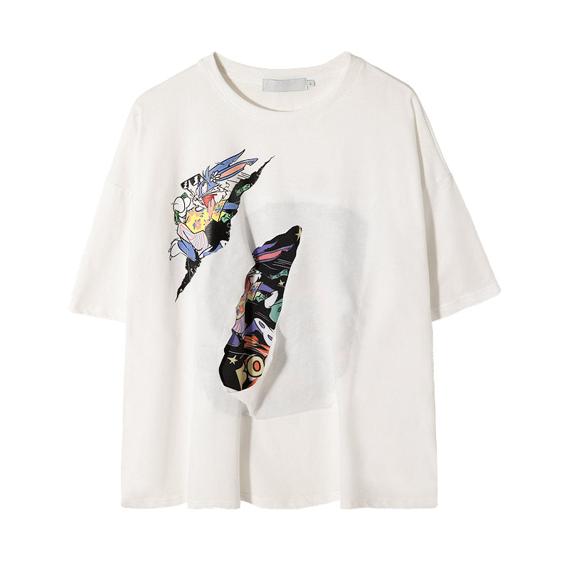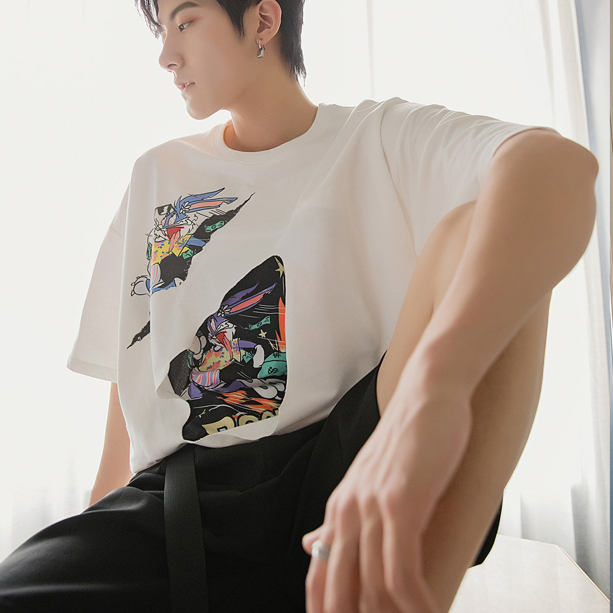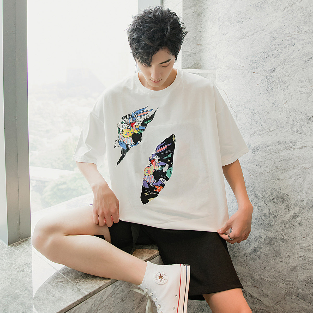 CHIC ERRO Summer short-sleeved men's tide brand trend loose men's half-sleeved hole printed white t-shirt