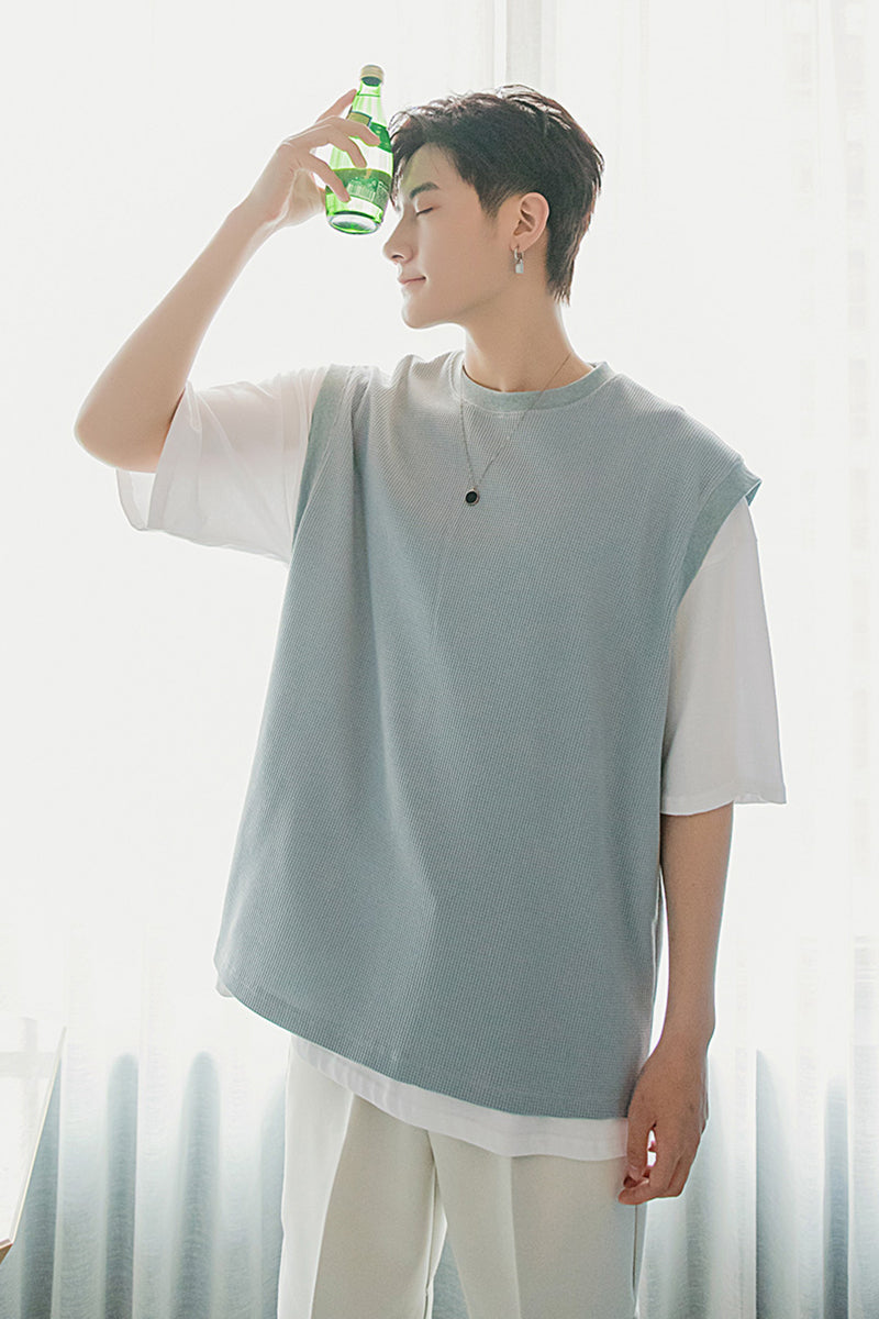 CHIC ERRO Summer thin loose waistcoat sleeveless t-shirt men's outer wear black vest men's trend