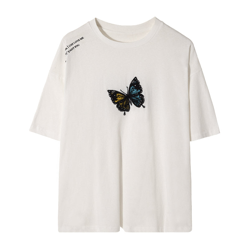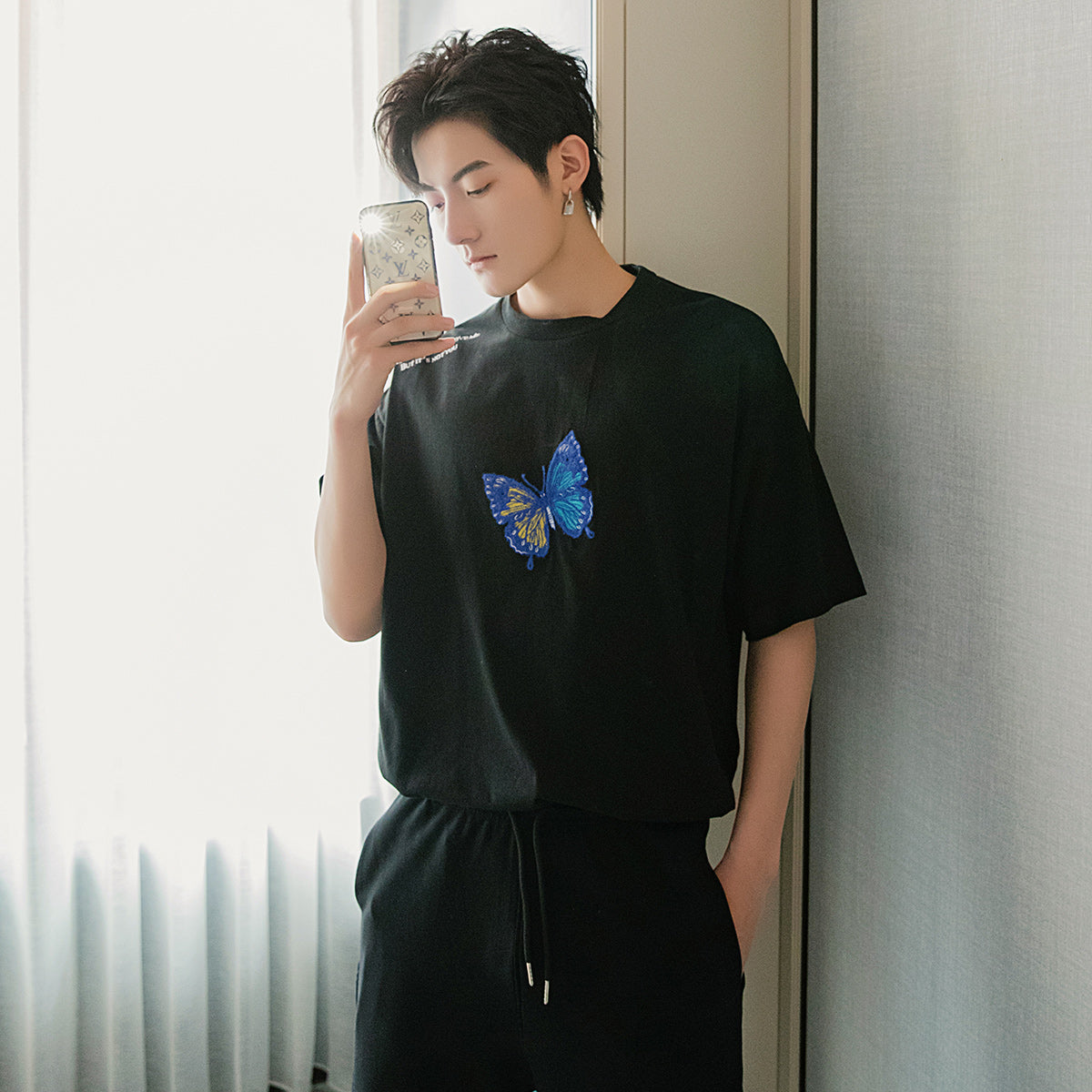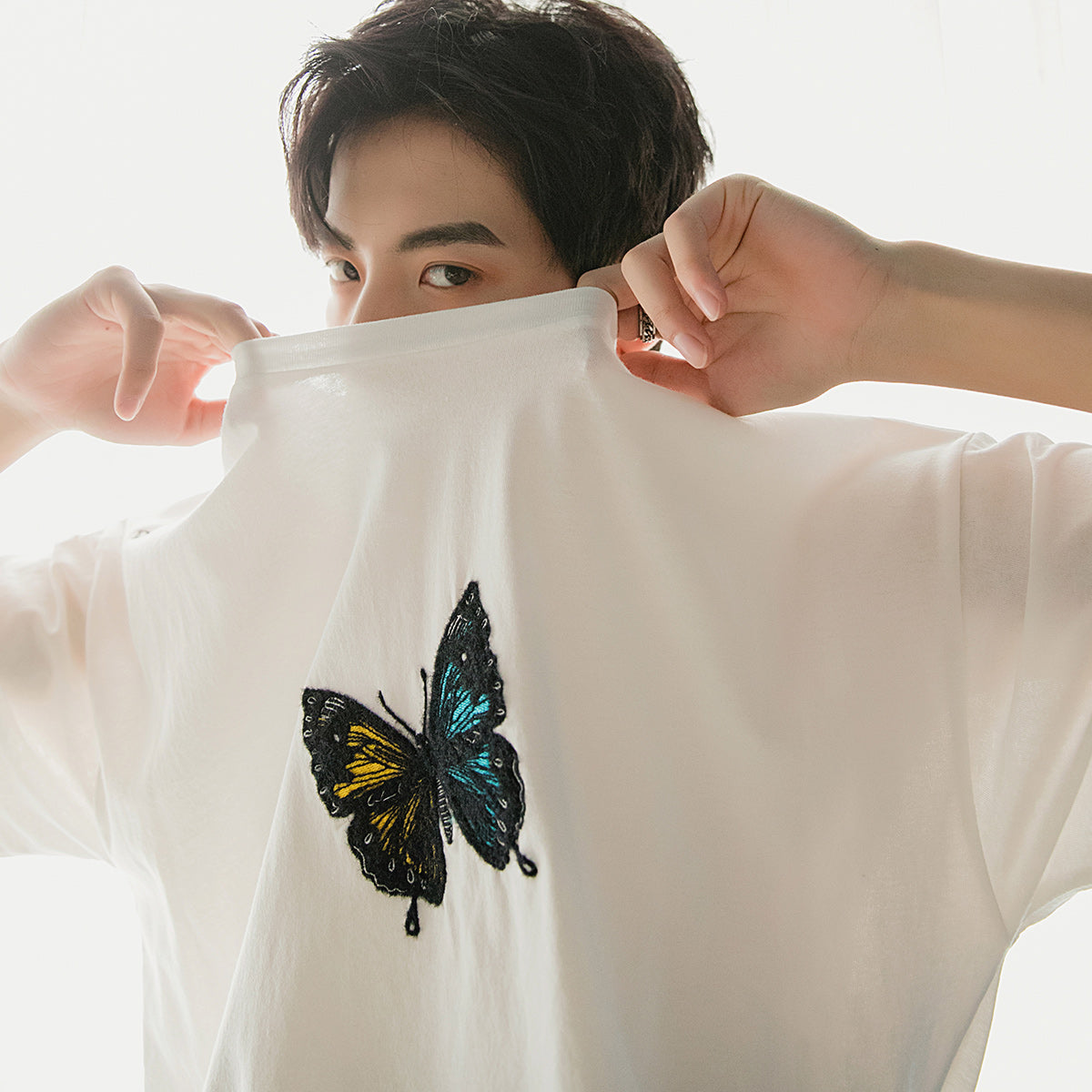 CHIC ERRO Summer white short-sleeved men's tide brand trend men's half-sleeved loose five-point sleeve embroidered t-shirt