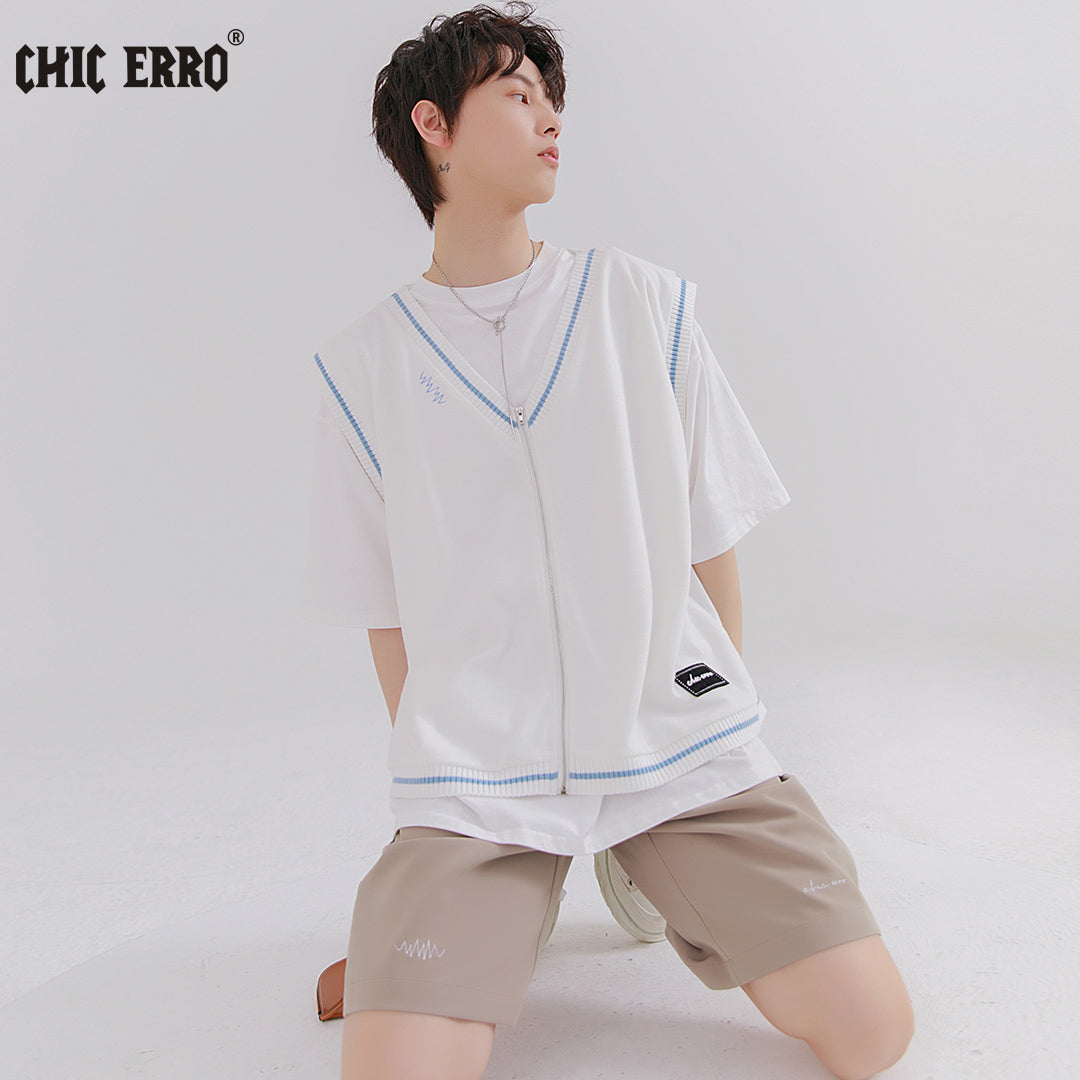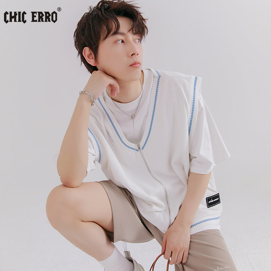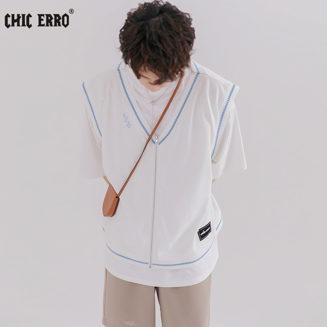 CHIC ERRO CHIC ERRO 2021 New Casual Vest Men's Summer V-neck Contrast Color Sleeveless Loose Thin Knit Cardigan