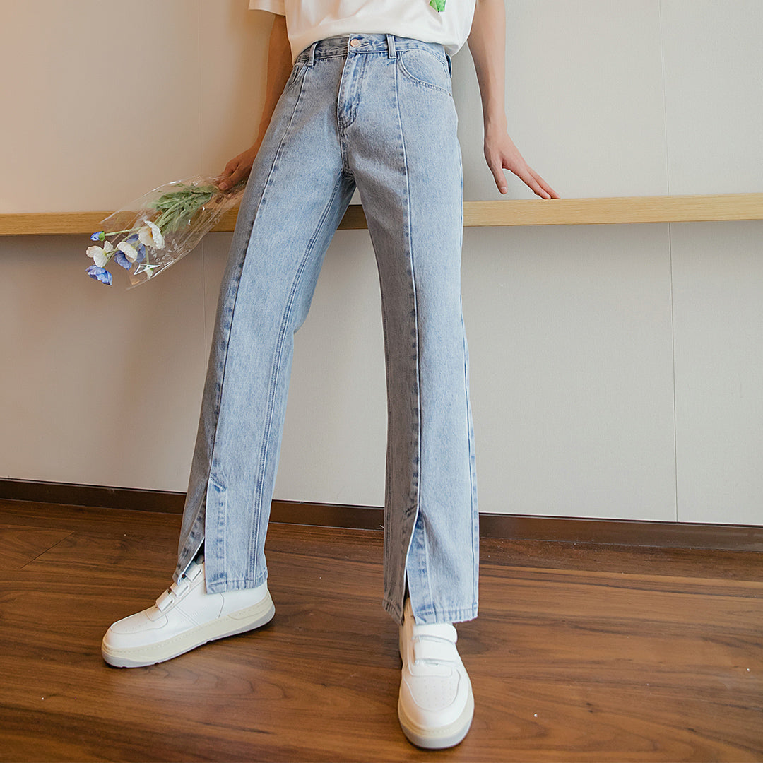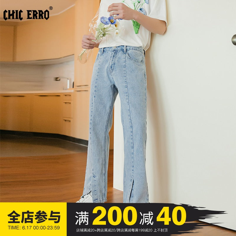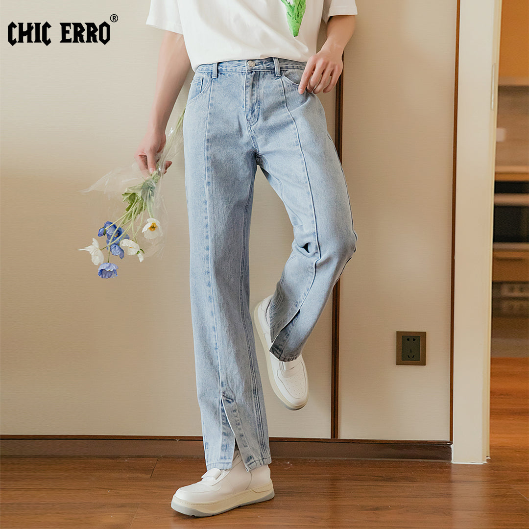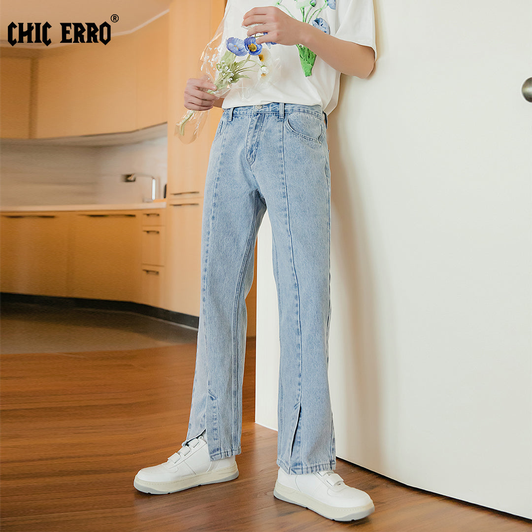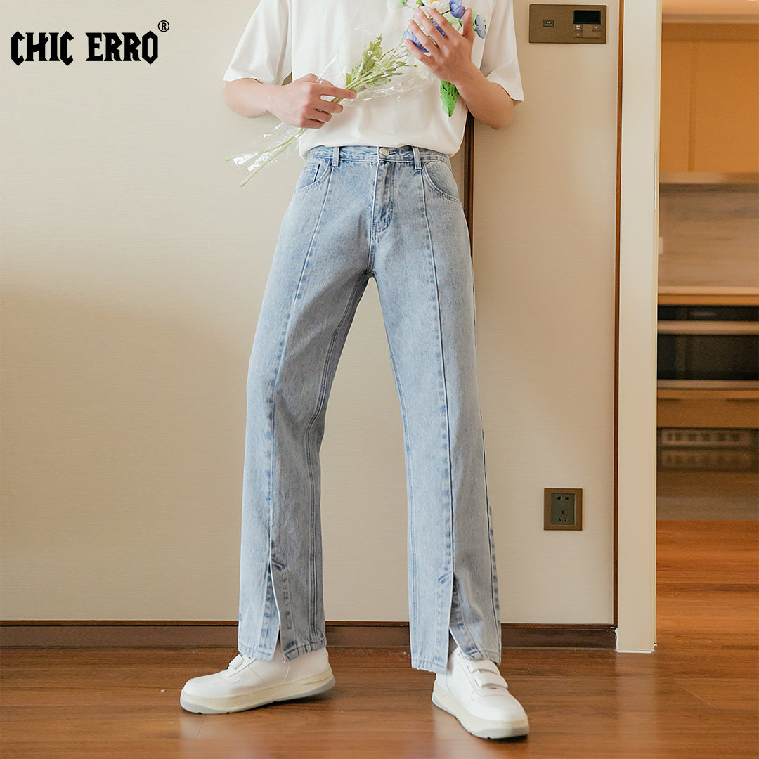 CHIC ERRO CHIC ERRO 2021 New Loose Straight Jeans Men's Summer Thin Youth Slit Flared Pants