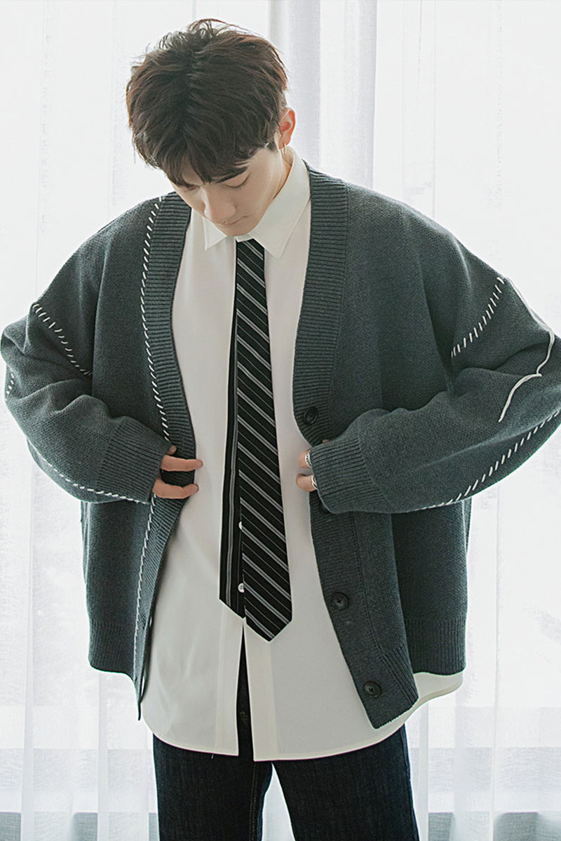 CHIC ERRO CHIC ERRO Autumn Topline Jacket Men's Korean Style Trendy Handsome Loose Men's College Wind Cardigan