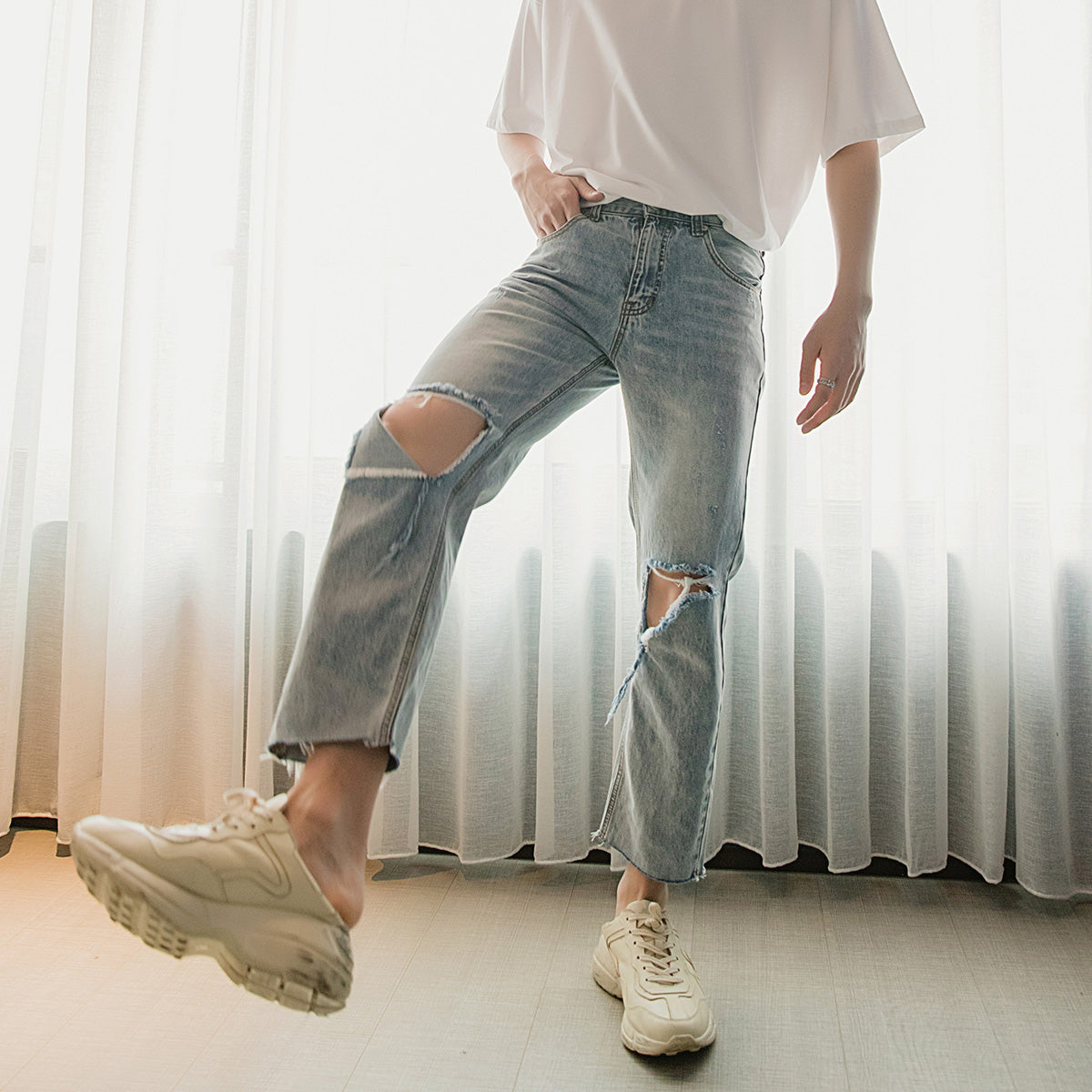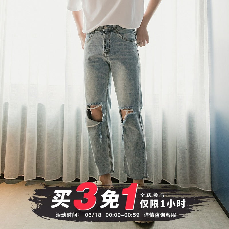CHIC ERRO CHIC ERRO Fall Loose Straight Casual Pants Men's Korean Style Trend Men's Blue Ripped Jeans