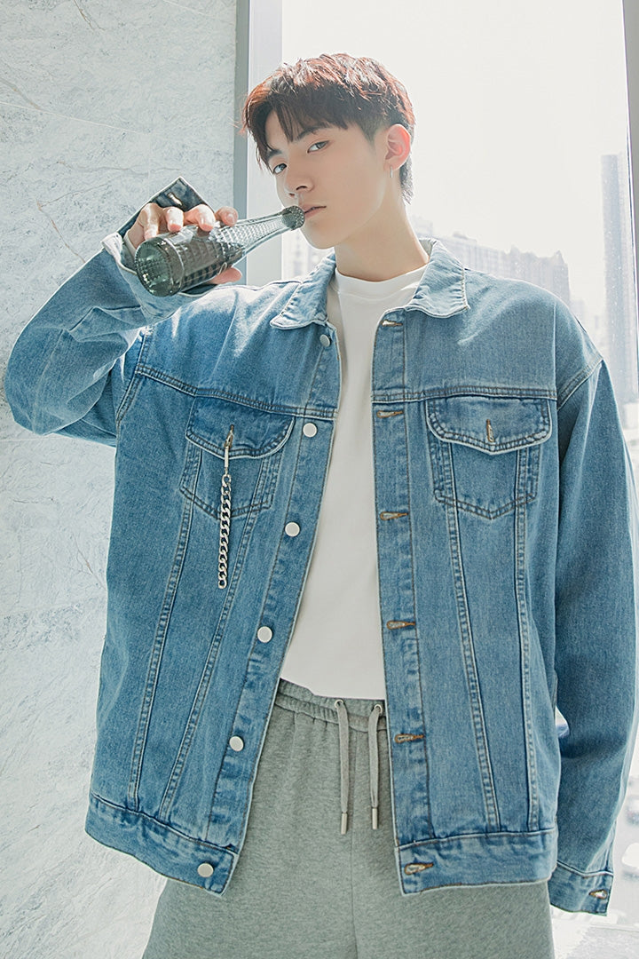 CHIC ERRO CHIC ERRO Fall Thin Washed Blue Denim Jacket Men's Korean Trend Loose Men's Casual Jacket