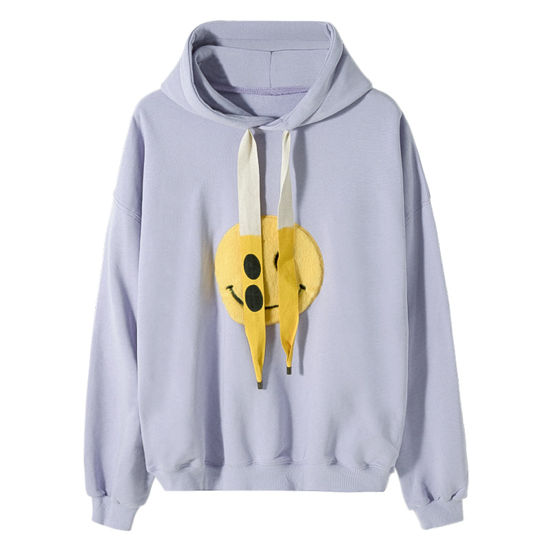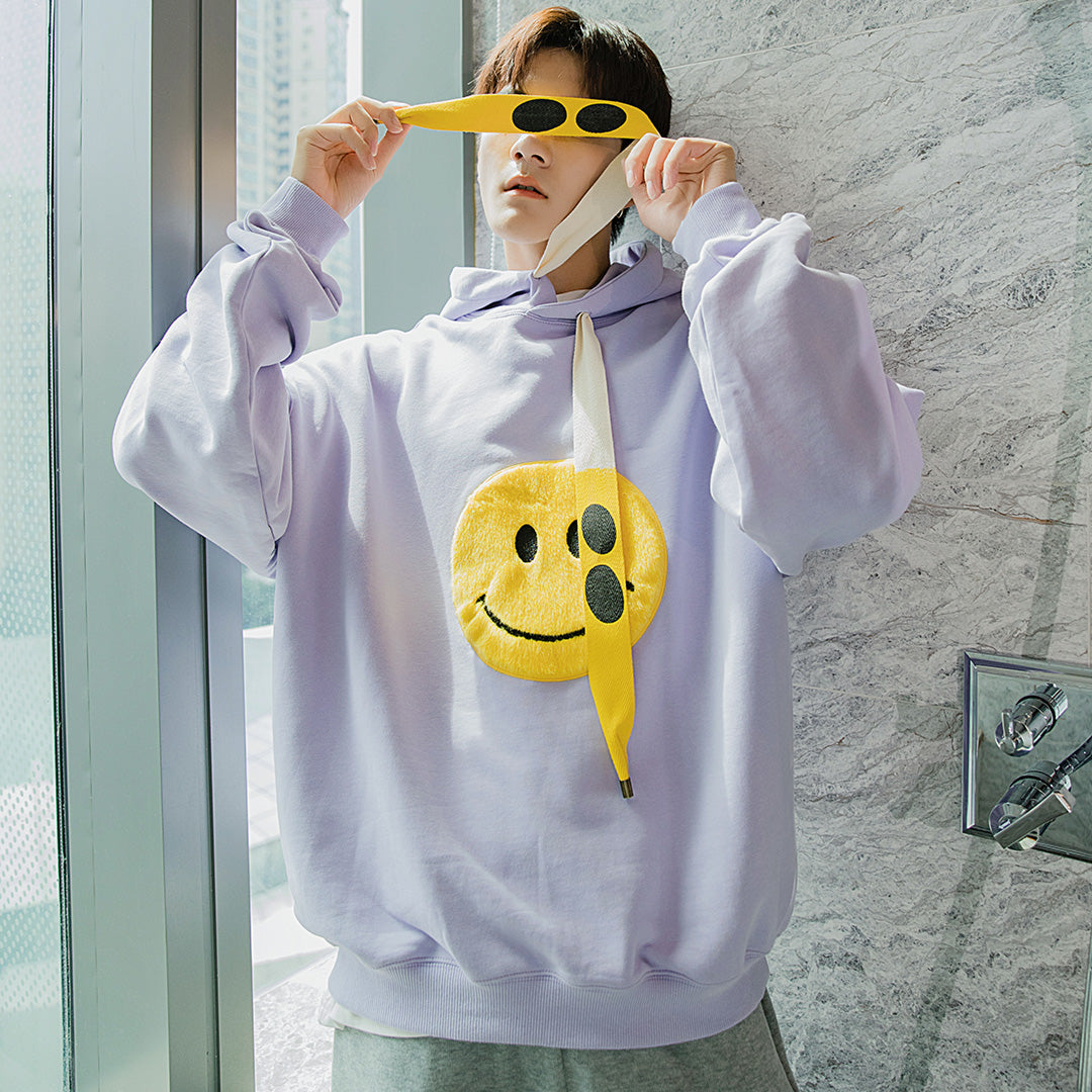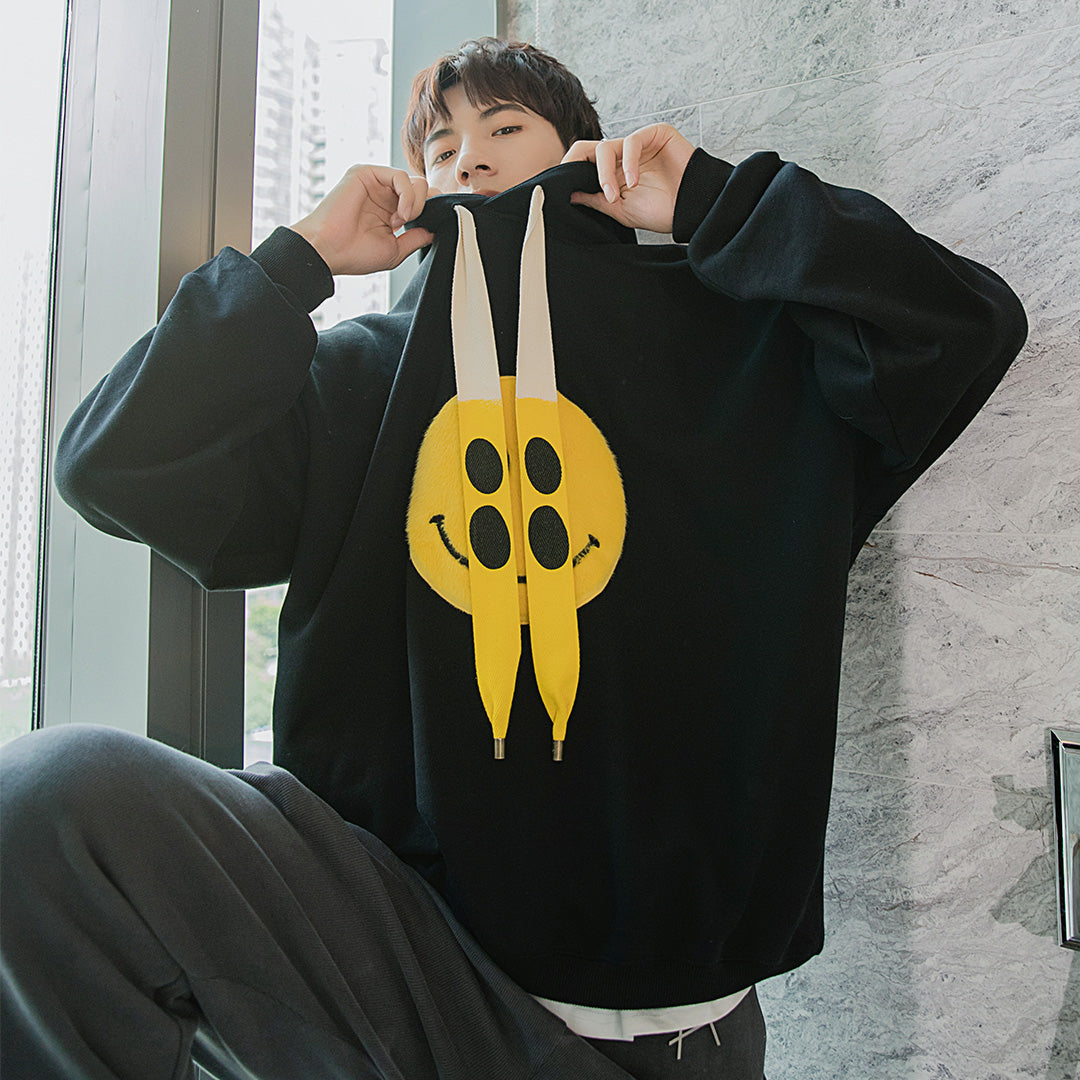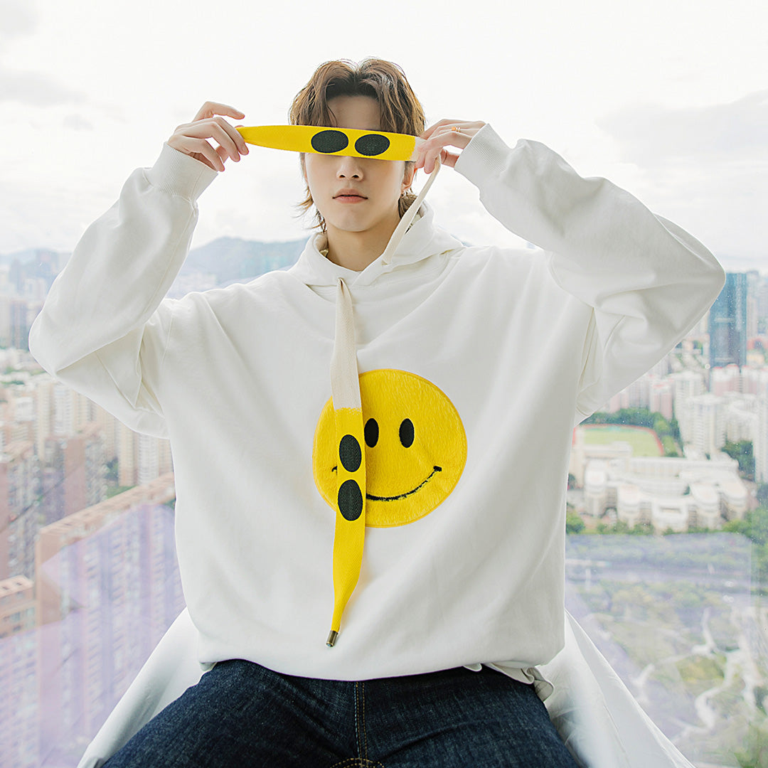 CHIC ERRO CHIC ERRO Men's Korean Tops Loose Lazy Smiley White Hooded Sweater Men's Trend