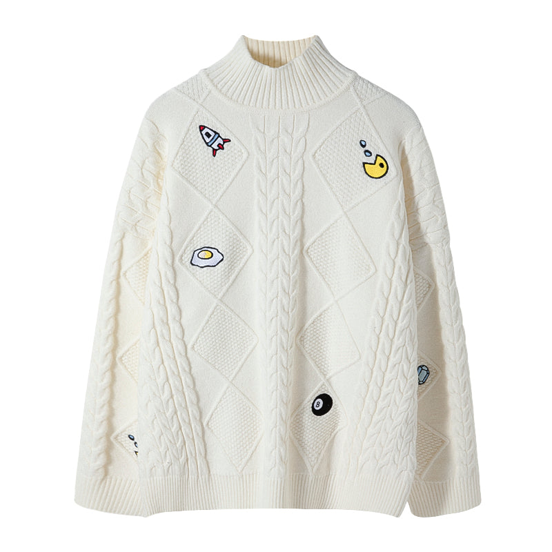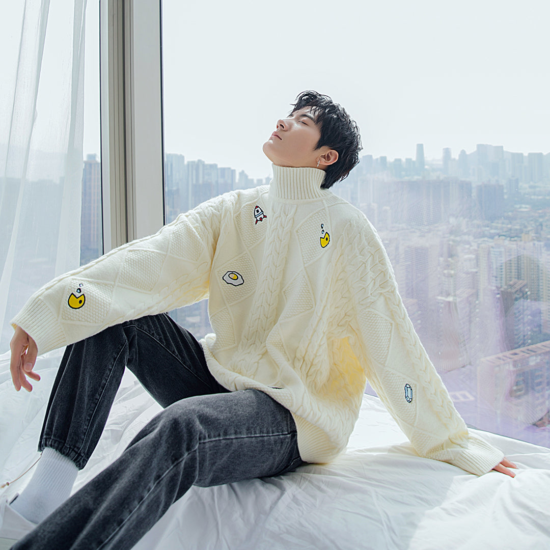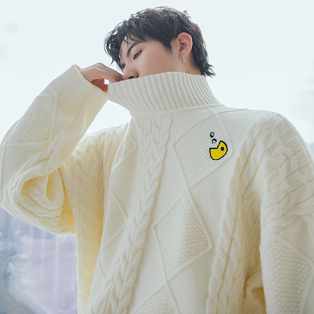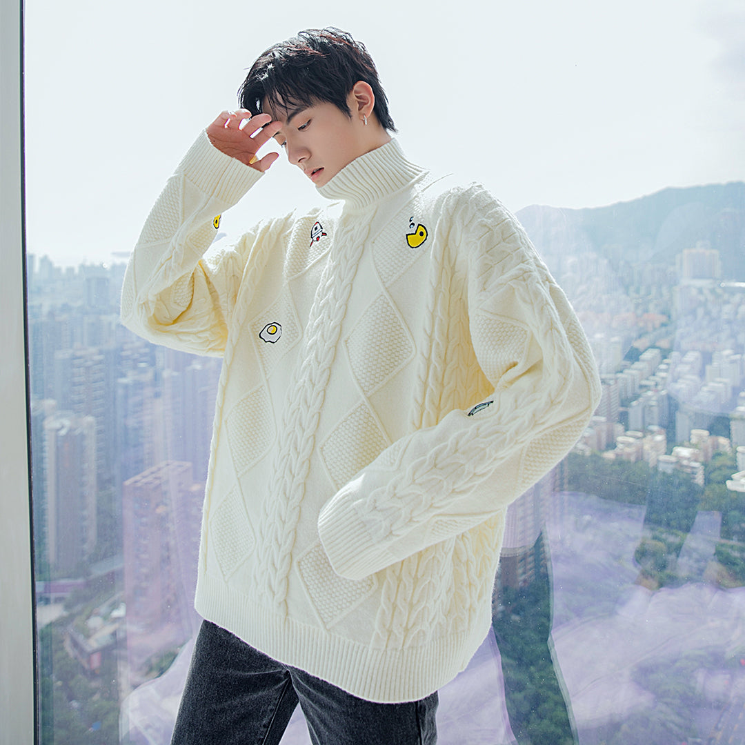 CHIC ERRO CHIC ERRO Men's New Turtleneck Sweater Twist Embroidery All-match Long Sleeve Top Loose Casual Knitwear