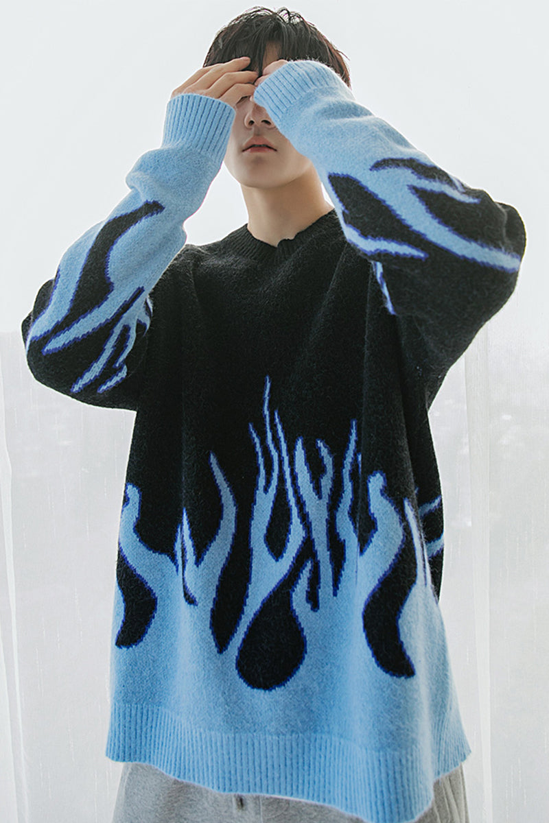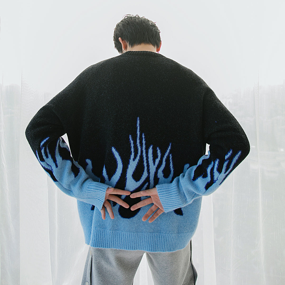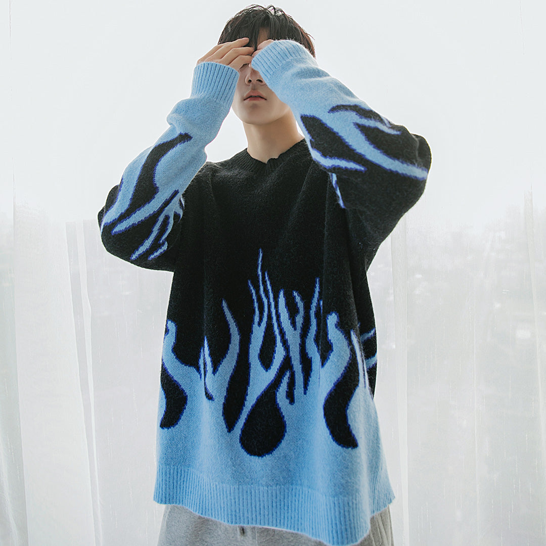 CHIC ERRO CHIC ERRO Men's Round Neck Sweater Design Sense Color-blocking Tops Teen Trend Handsome Pullover Knitwear