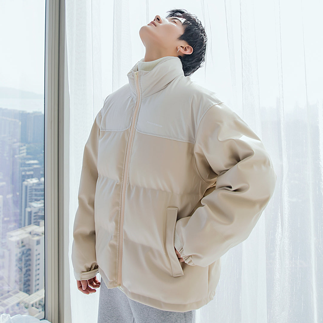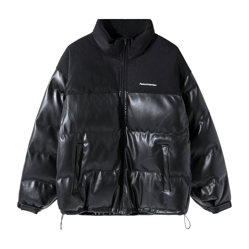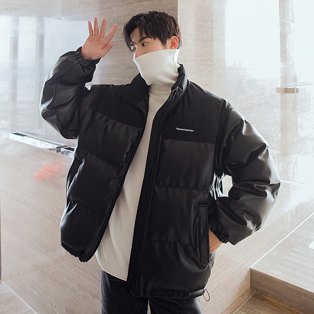 CHIC ERRO CHIC ERRO Men's Winter Cotton Jacket Stand Collar Embroidery Stitching Korean Thickening Youth New Leather Jacket