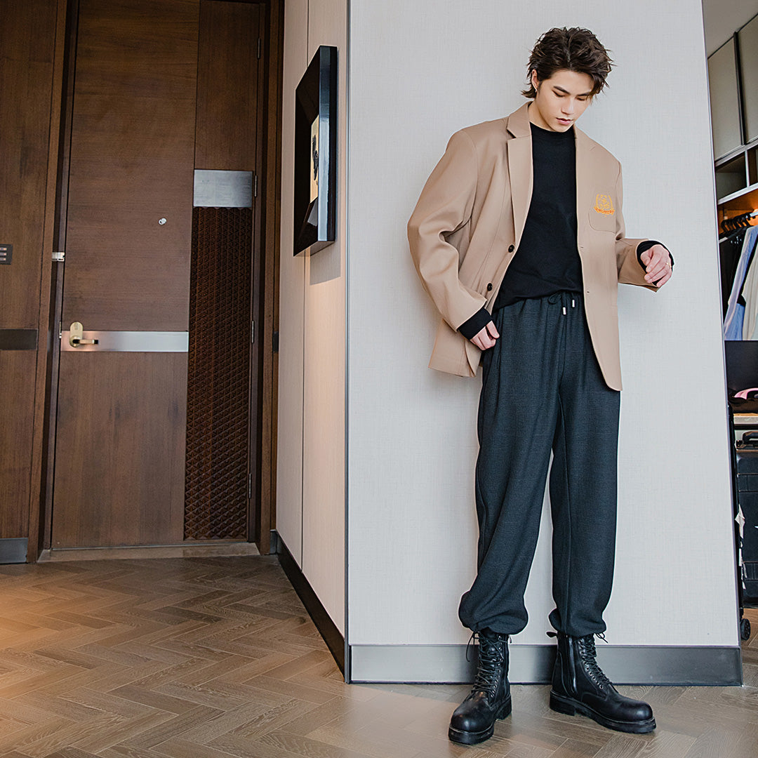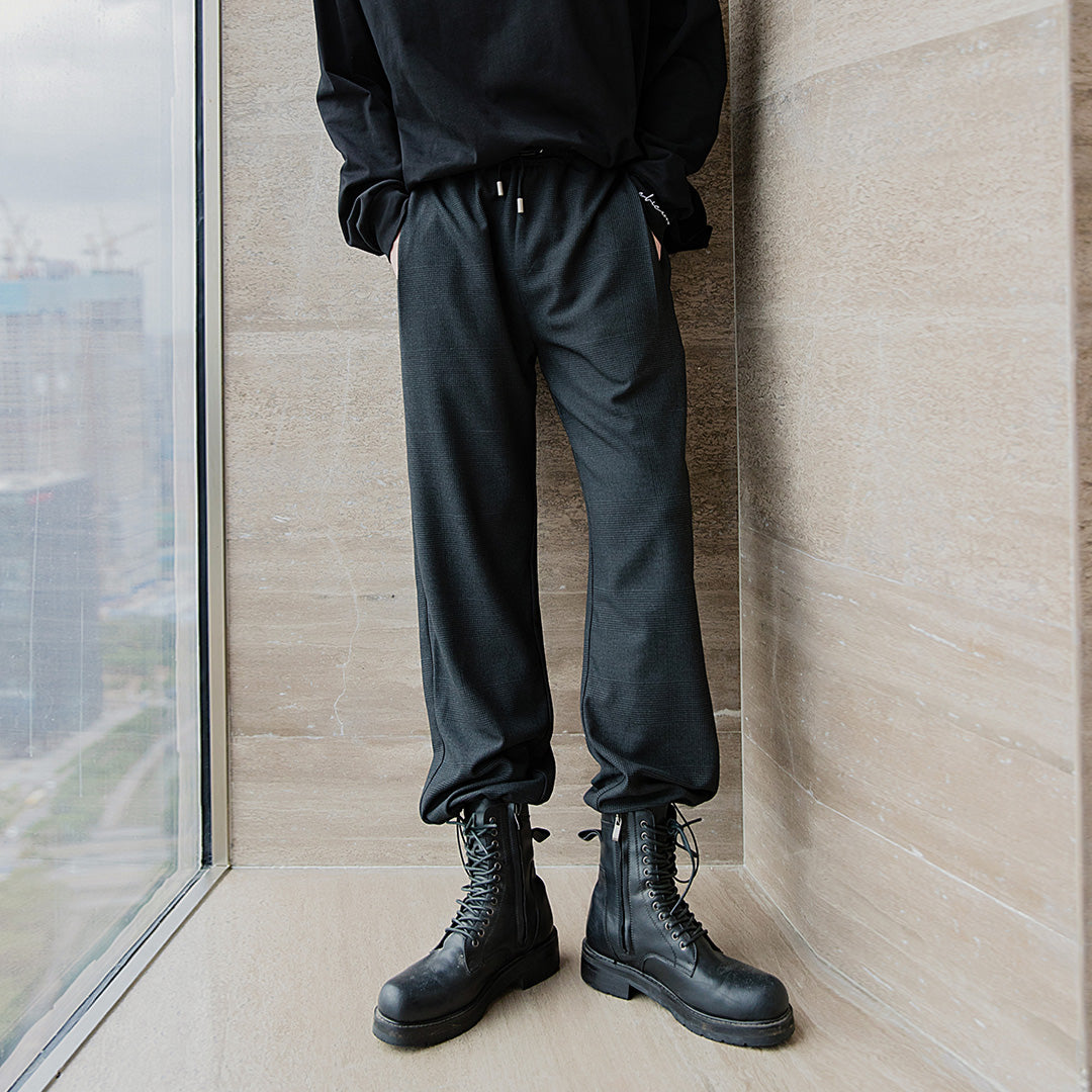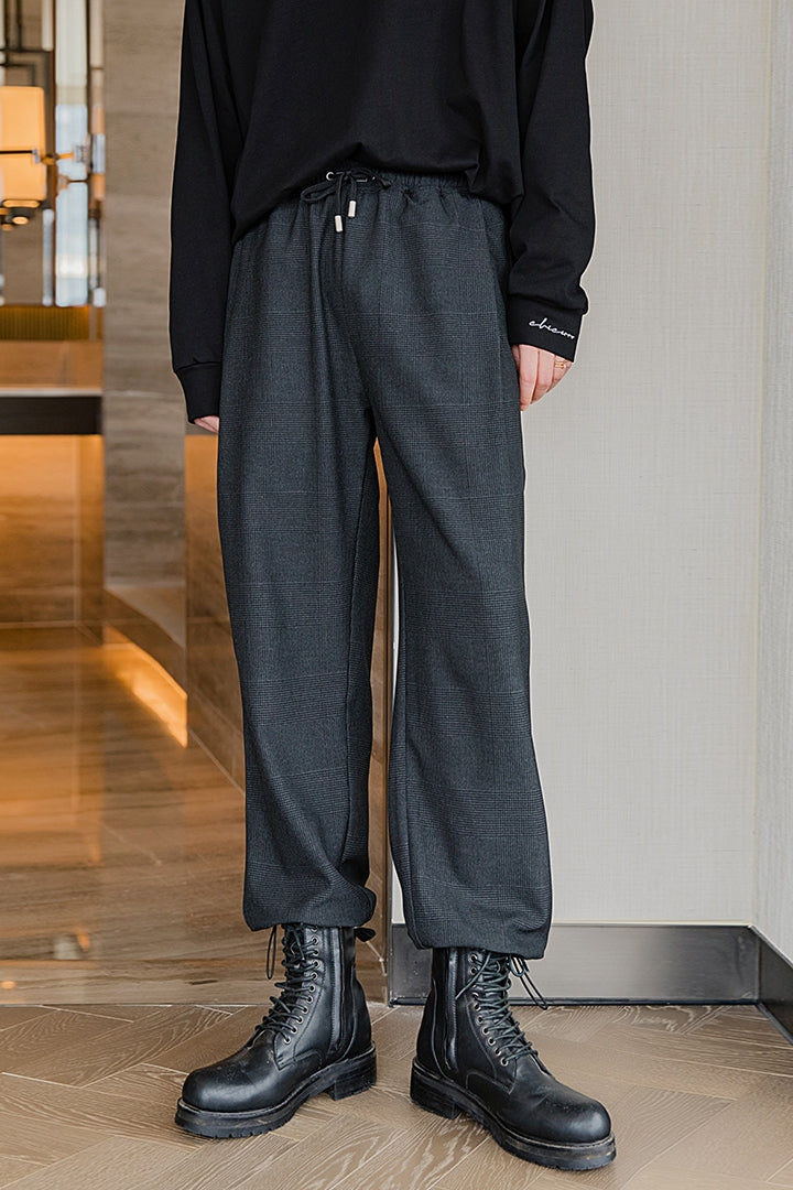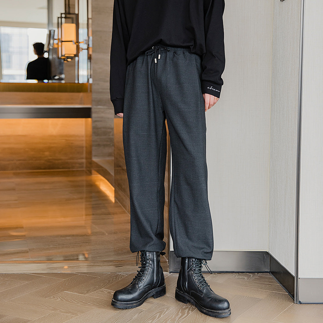 CHIC ERRO CHIC ERRO Plaid Casual Pants Men's Korean Style Trendy Men's Nine Points Loose Straight Drawstring Drawstring Pants