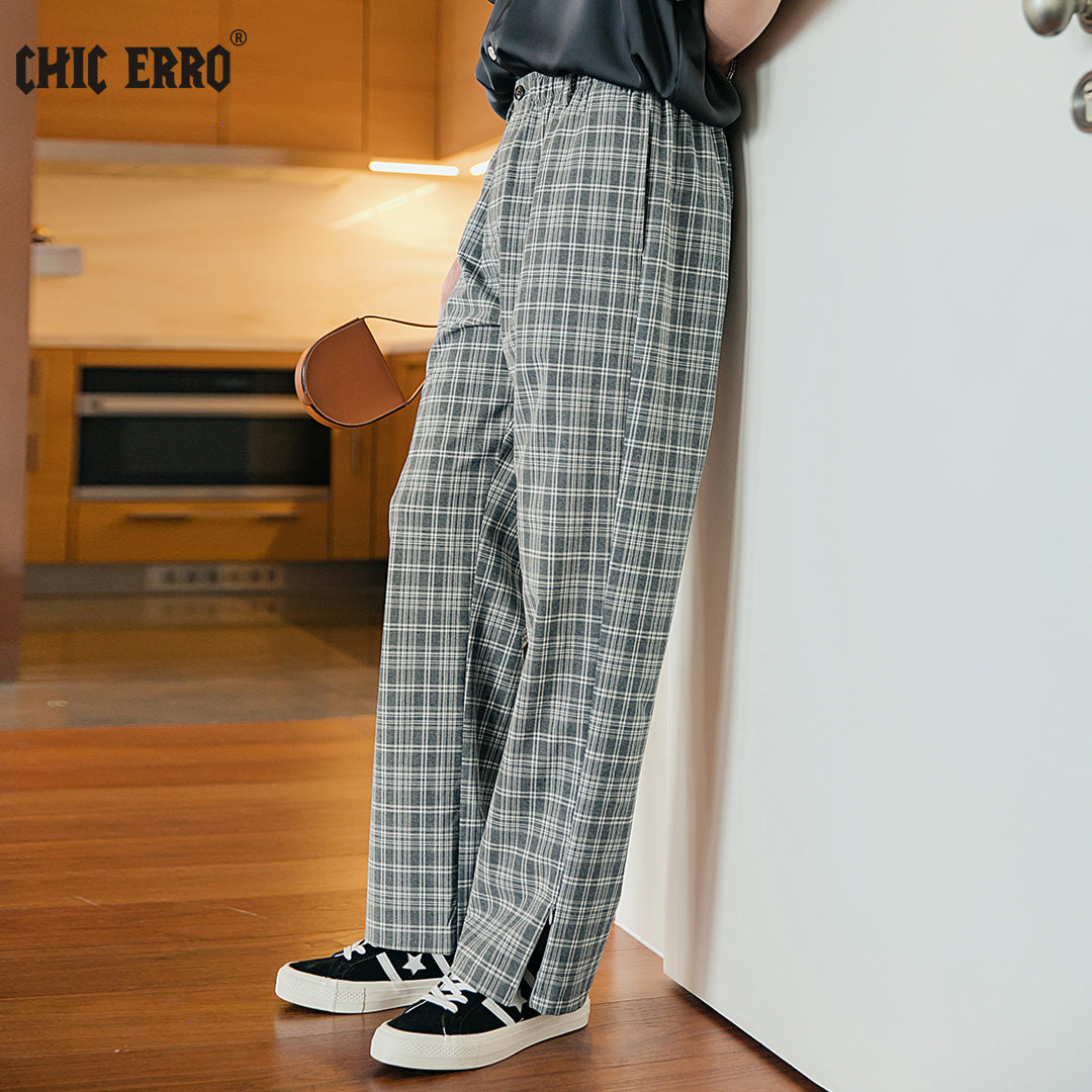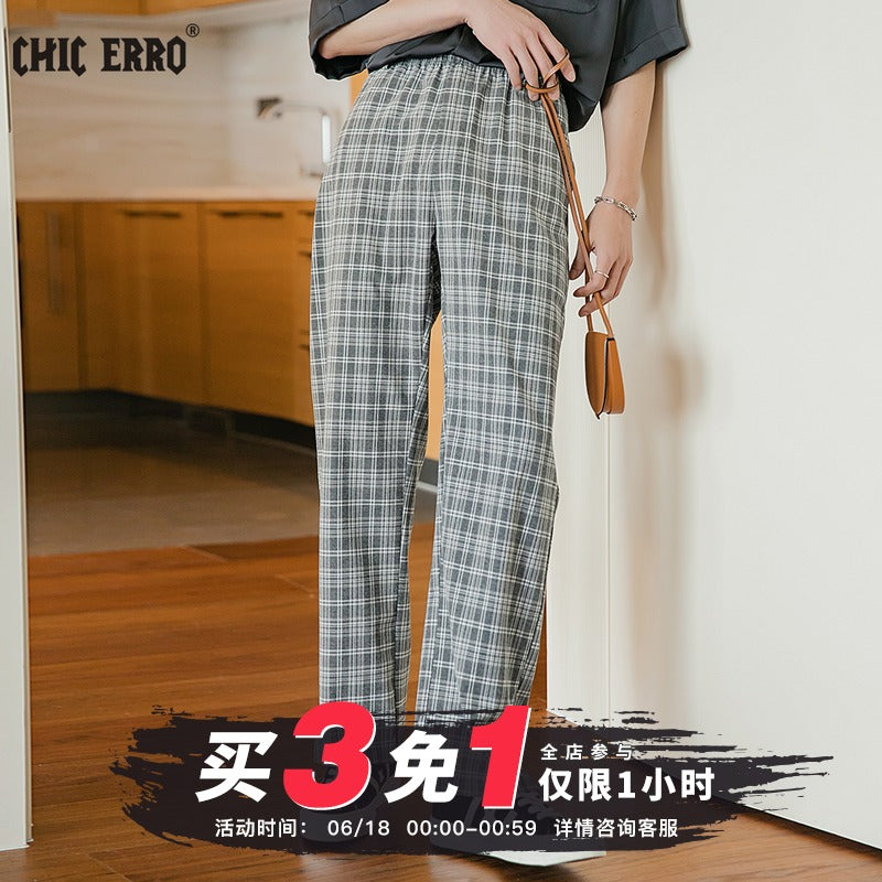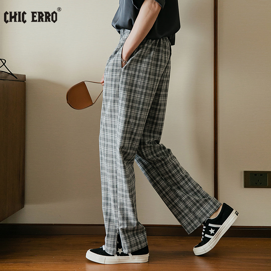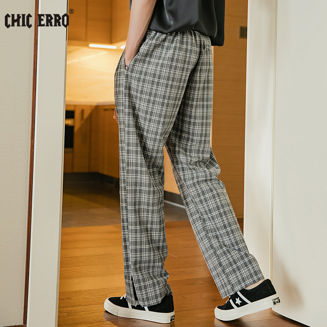 CHIC ERRO CHIC ERRO Slit Straight Casual Pants Men's Summer Youth Trend Boys All-match Loose Plaid Pants