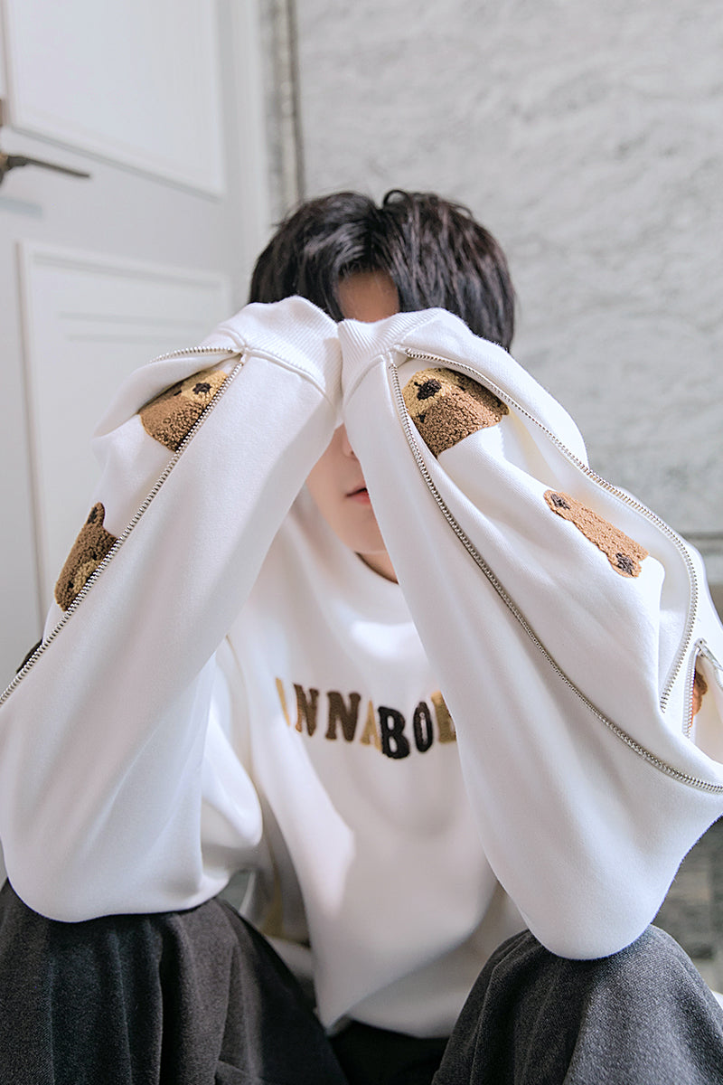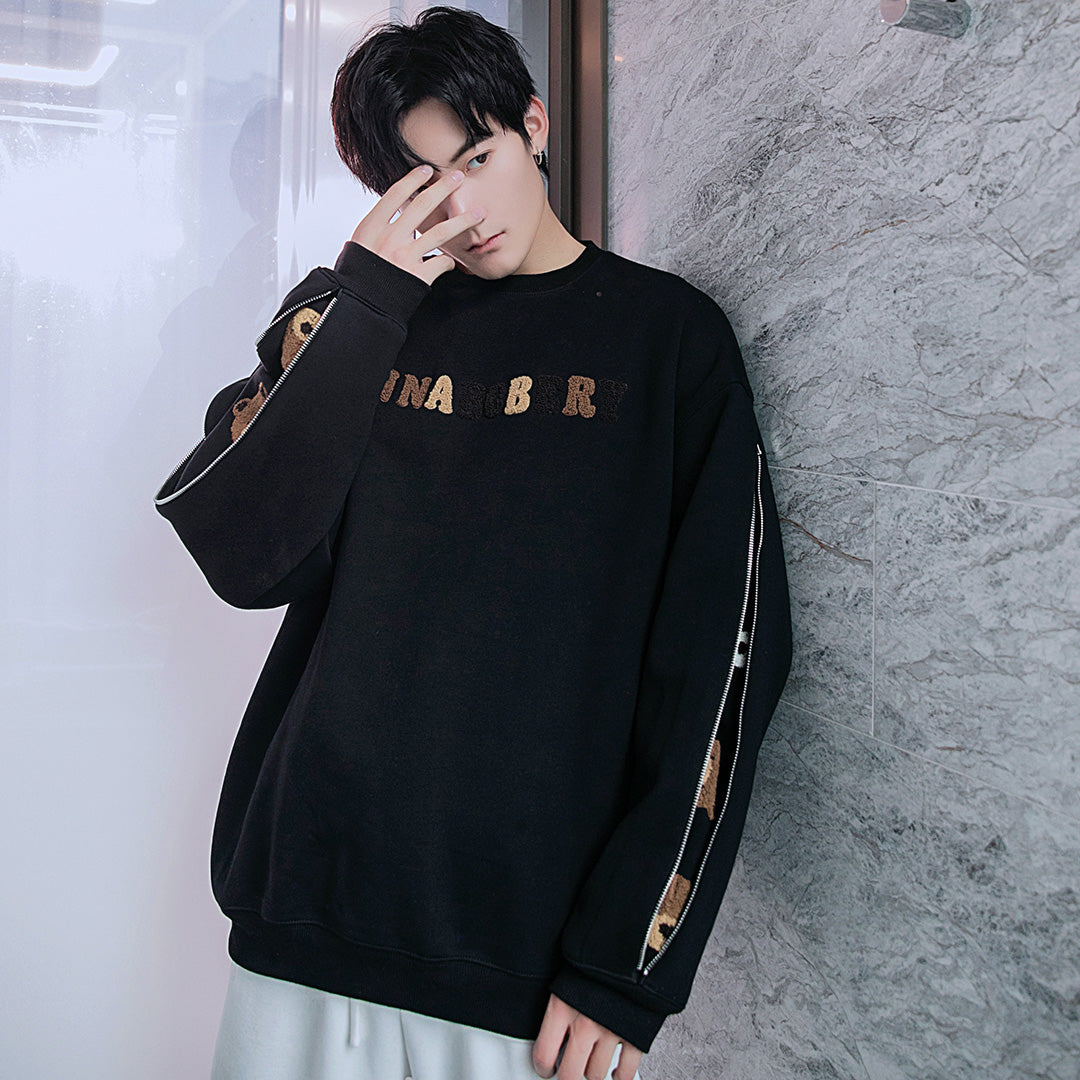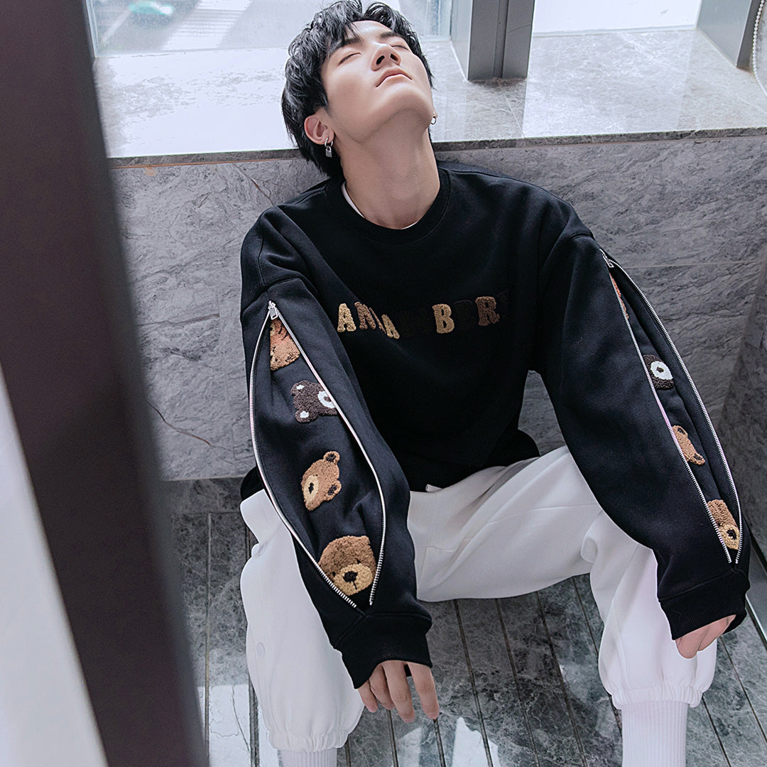 CHIC ERRO CHIC ERRO Spring Bear Flocking Long Sleeve Round Neck Sweater Boys Loose Trend All-match Design Top