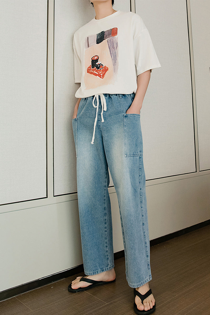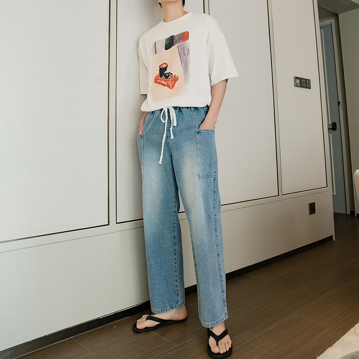 CHIC ERRO CHIC ERRO Spring Men's Casual Long Pants Men's Korean Trend Loose Straight Washed Blue Jeans