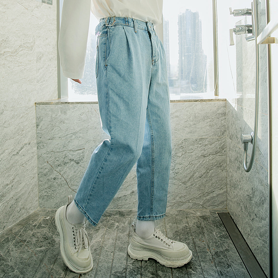 CHIC ERRO CHIC ERRO Spring New Handsome Casual Loose Straight Jeans Men's Korean Trend All-match Cropped Pants