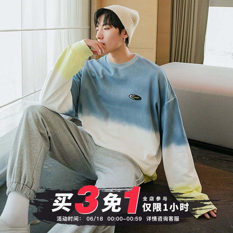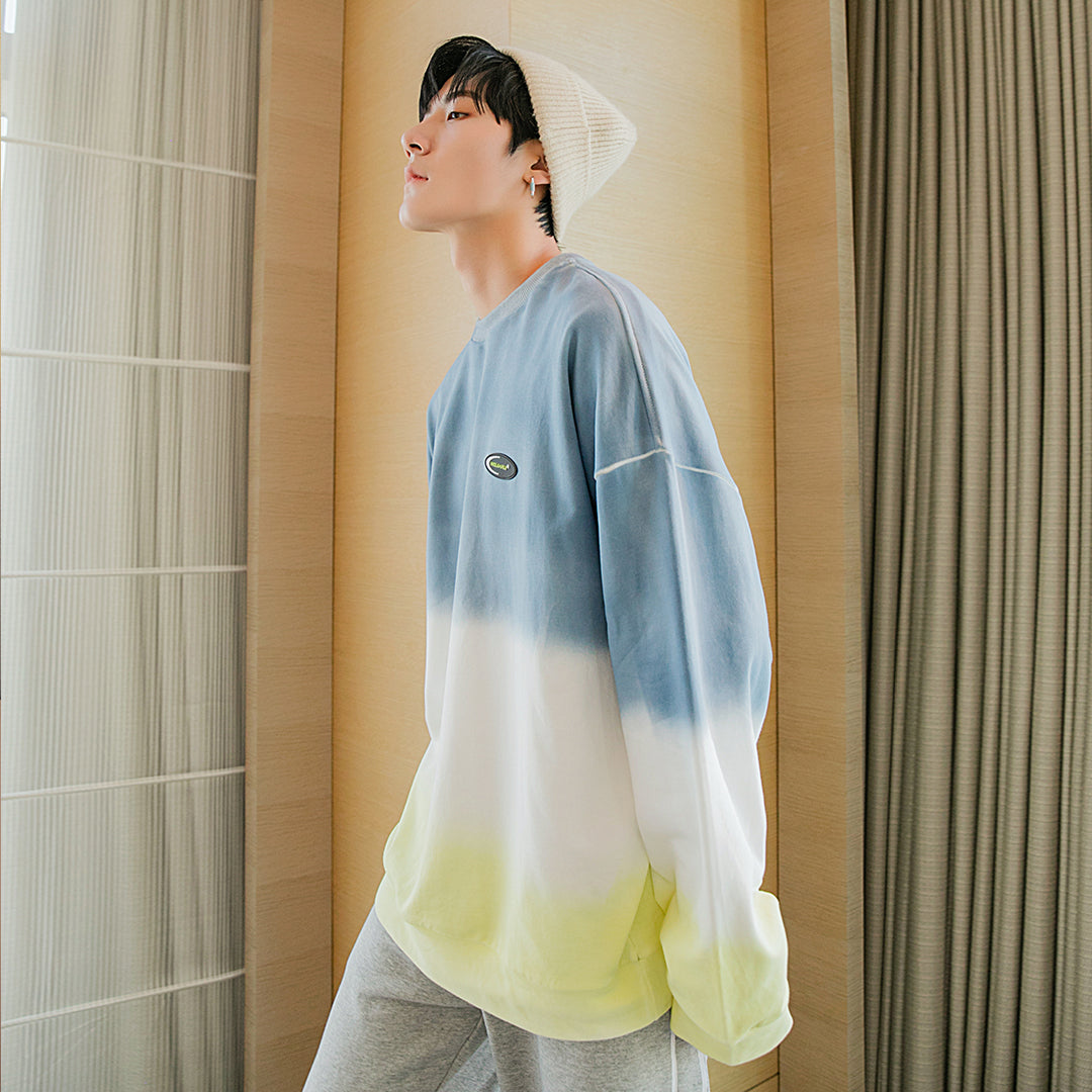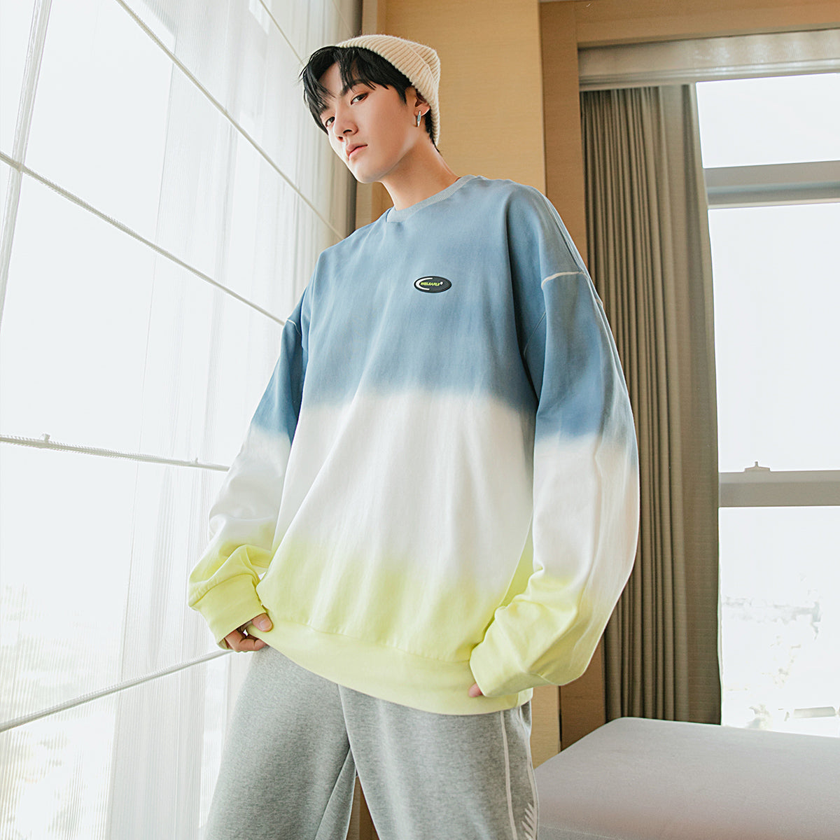 CHIC ERRO CHIC ERRO Spring New Tie-dye Contrast Round Neck Long Sleeve Loose Trend Youth Gradient Pullover Sweater