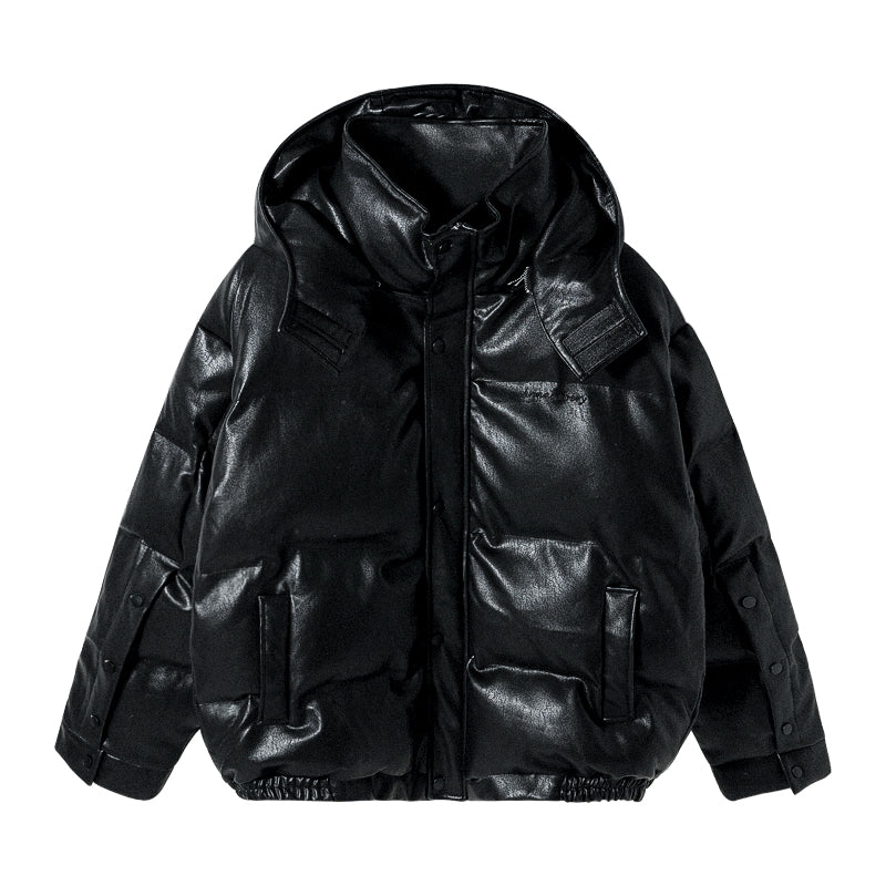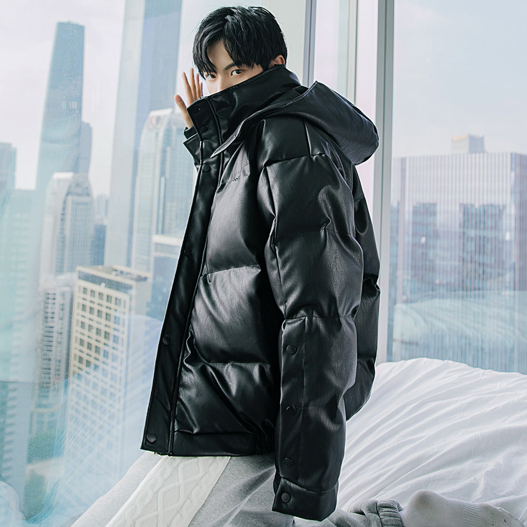 CHIC ERRO CHIC ERRO Stand Collar Cotton Jacket Back Letter Leather Jacket Loose Thickening Teen Hooded Jacket