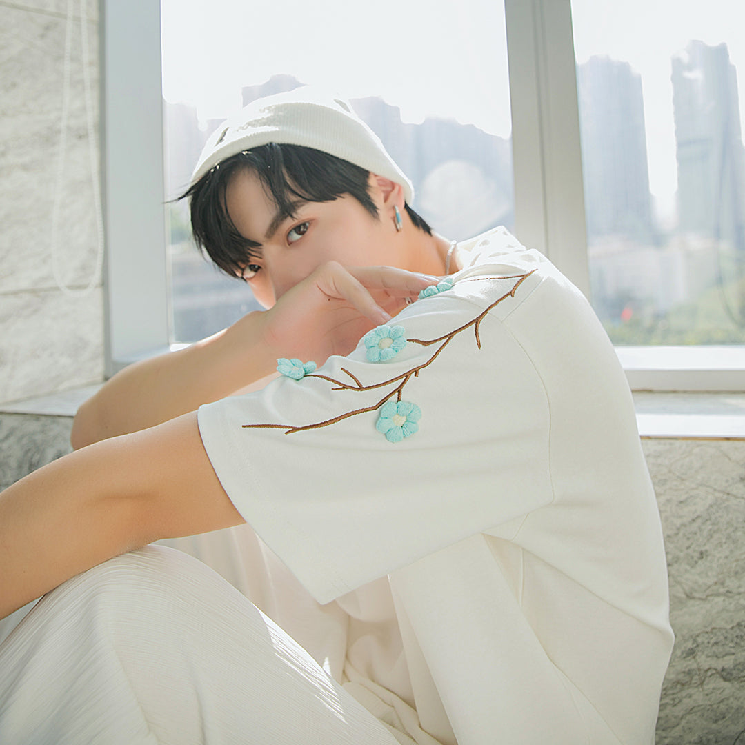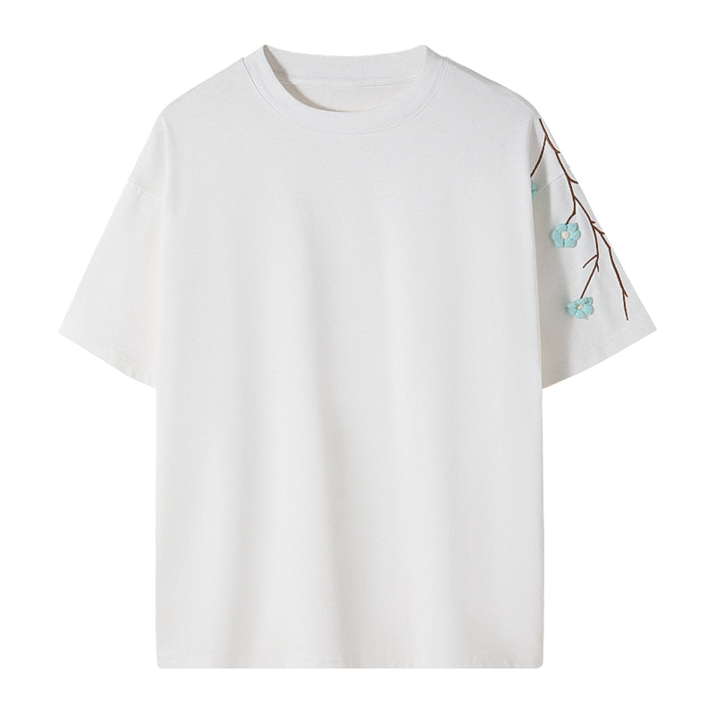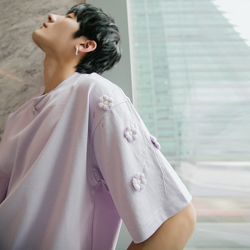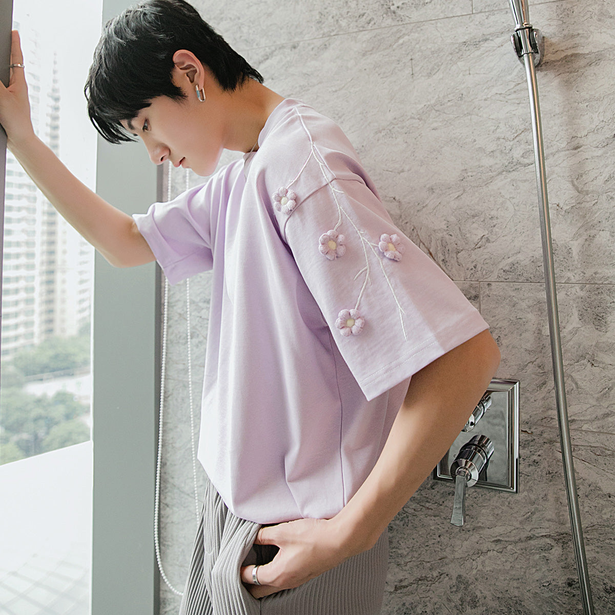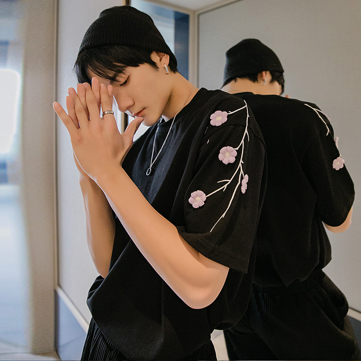CHIC ERRO CHIC ERRO Summer Embroidered T-shirt Men's Short Sleeve Tide Brand All-match Loose Top Flower Youth T-shirt