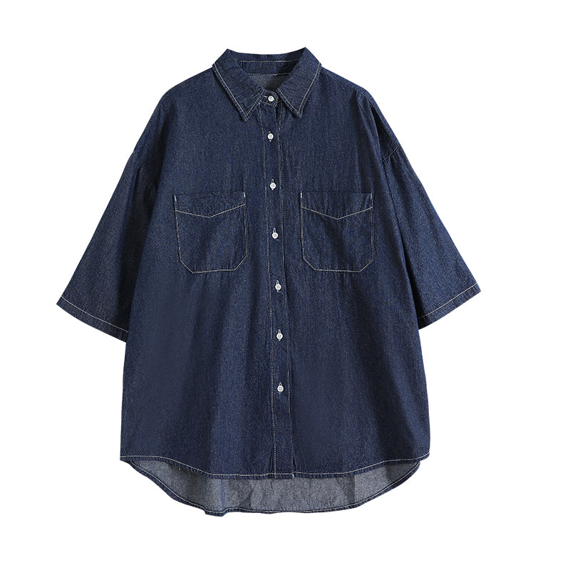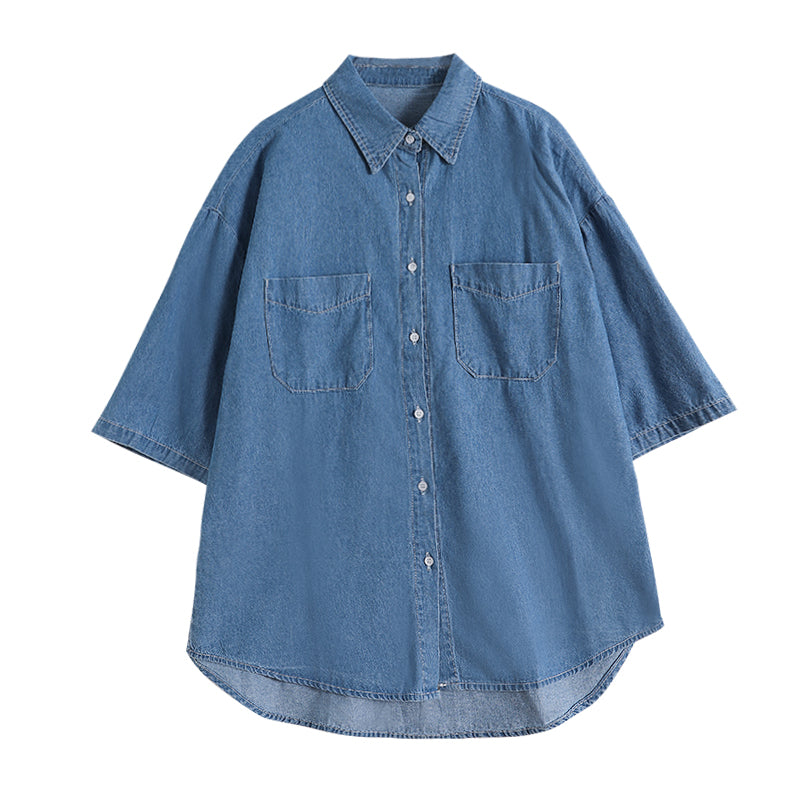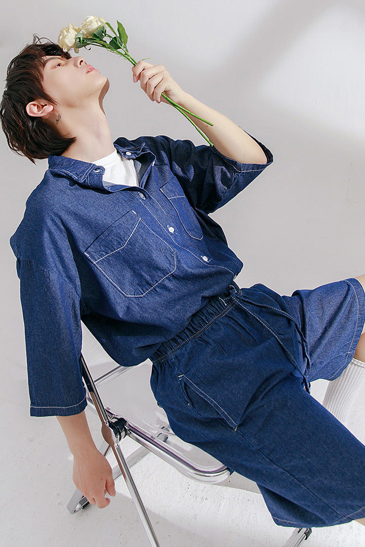 CHIC ERRO CHIC ERRO Thin Denim Shirt Men's Short Sleeve Loose Shorts Men's Youth Handsome Summer Casual Suit