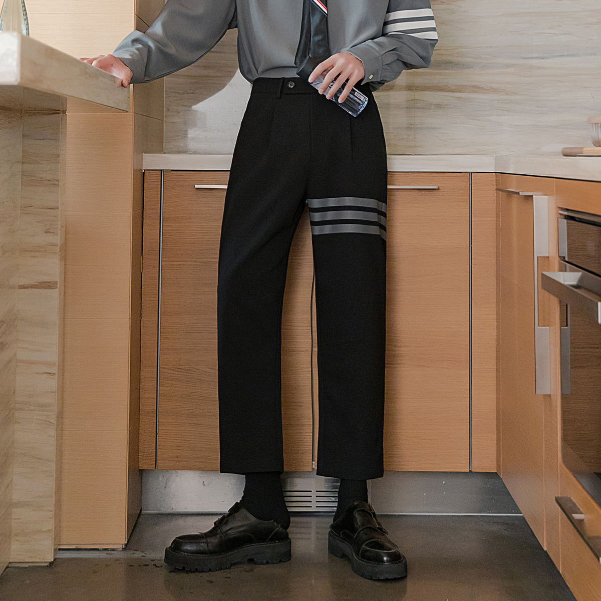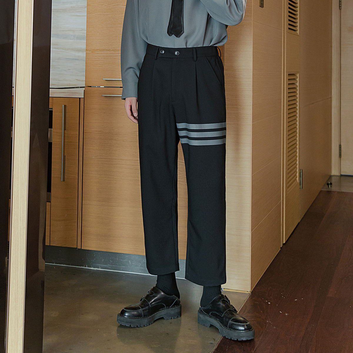 CHIC ERRO CHIC ERRO Trendy Autumn Stripes Contrast Color Stitching Nine-point Casual Pants Men's Straight Loose Pants