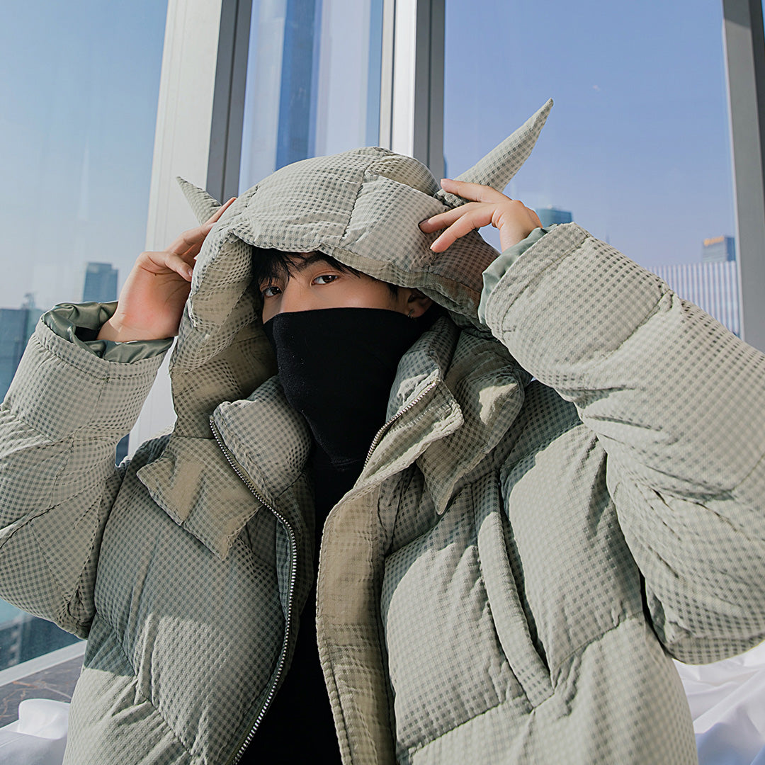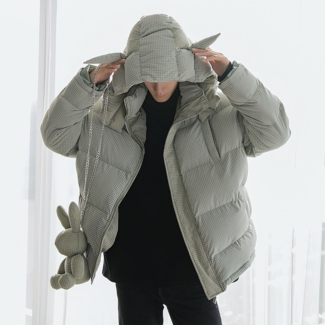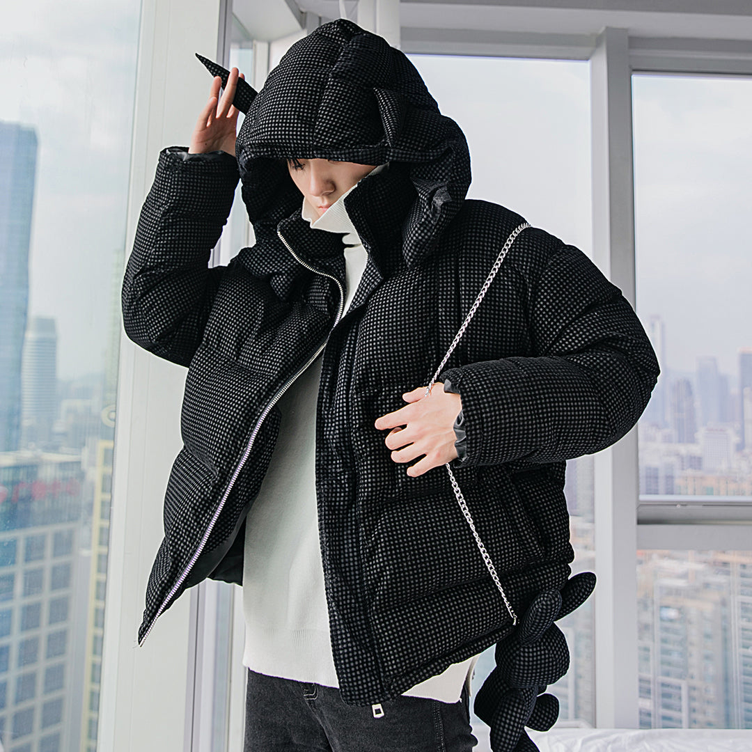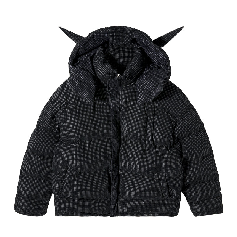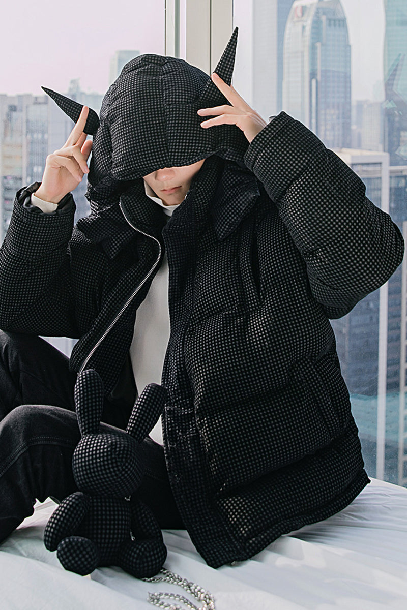CHIC ERRO CHIC ERRO Winter New Black Plaid Hooded Jacket Messenger Bunny Doll Trend Fashion Thick Cotton Coat