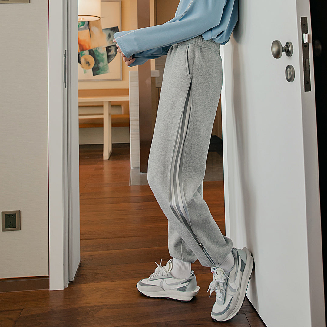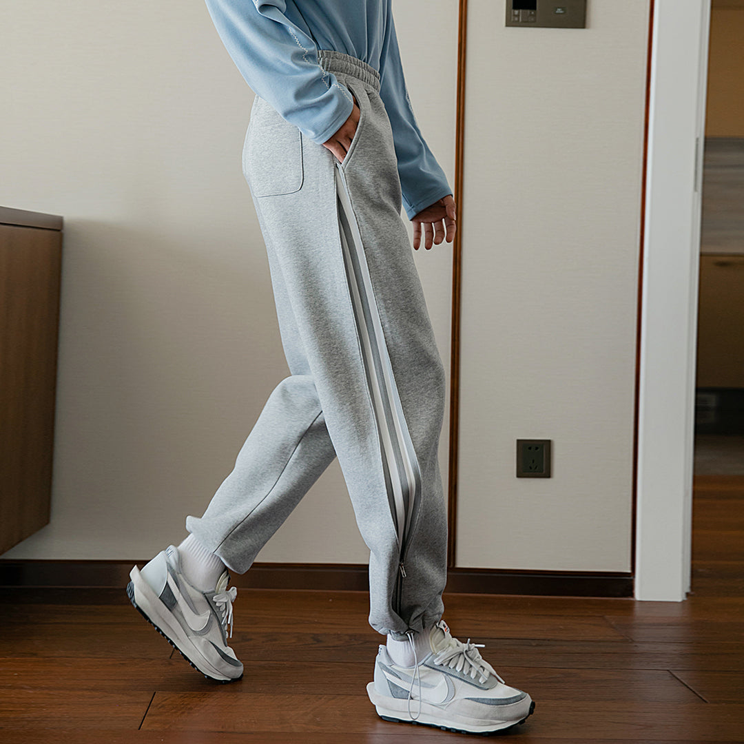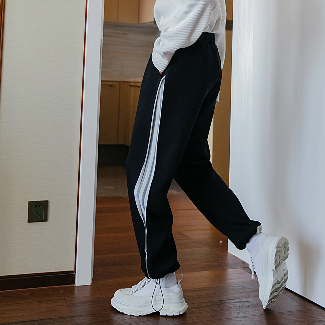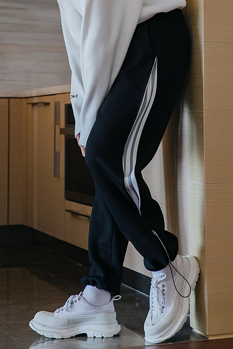 CHIC ERRO CHIC ERRO Winter New Men's Casual Pants Contrast Color Slit Knitted Feet Korean Fashion Trendy Handsome Loose Pants