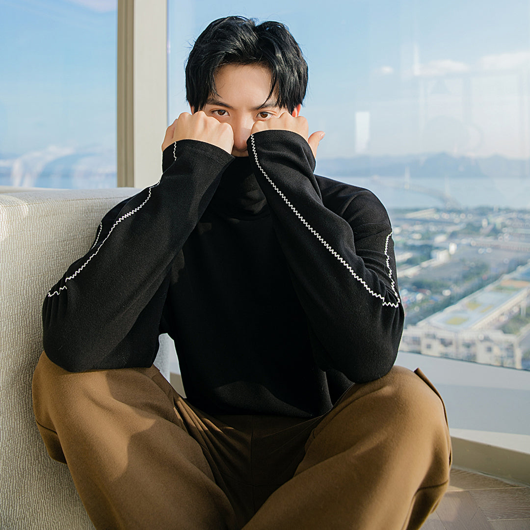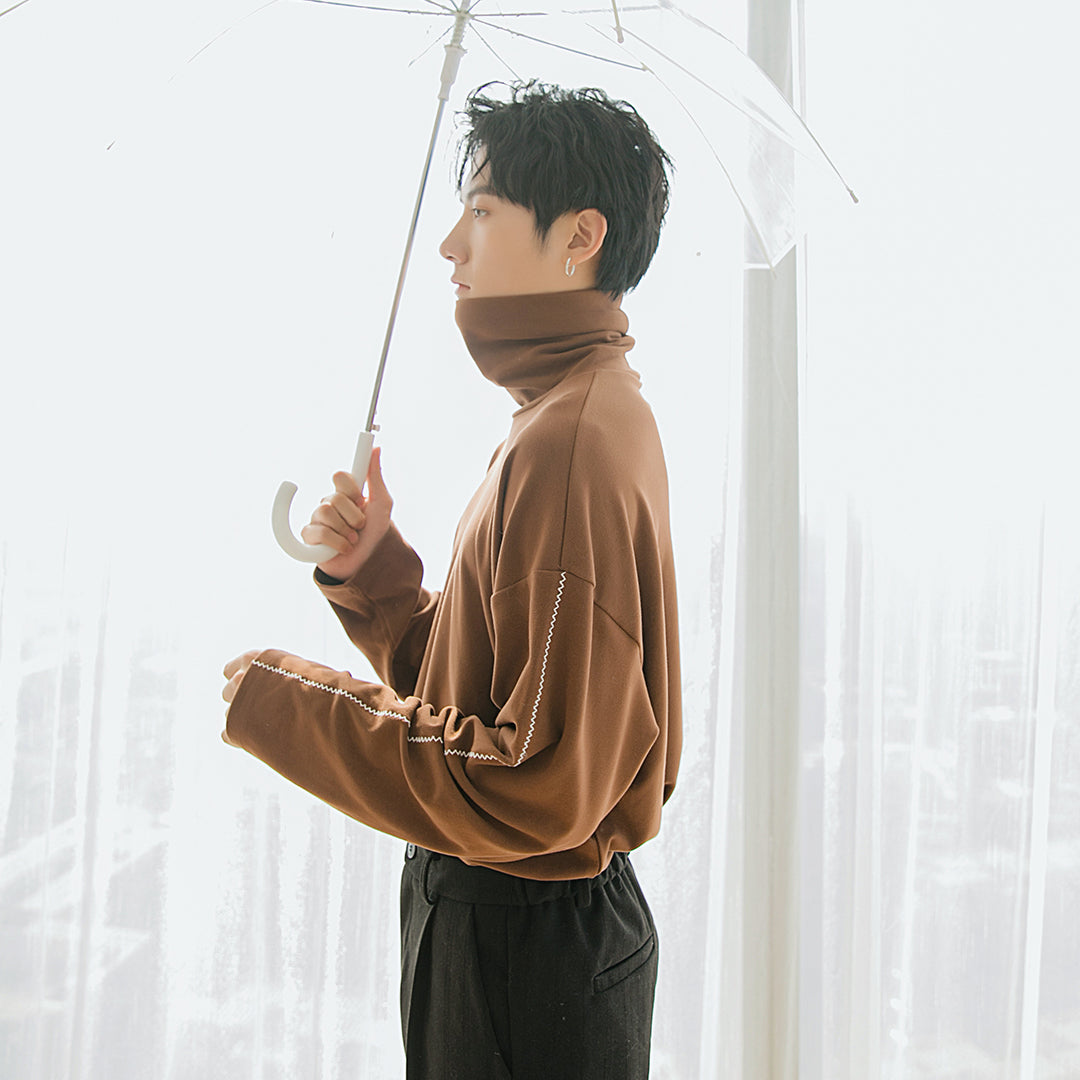CHIC ERRO CHIC ERRO Winter New Men's Turtleneck Tops Korean T-shirt Top-stitched Bottoming Shirt Loose Casual Long Sleeve