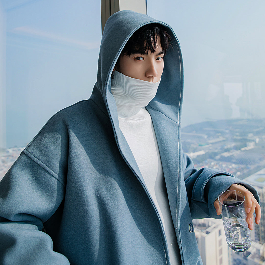 CHIC ERRO CHIC ERRO Winter New Men's Woolen Coat Loose Trend Casual Teen Woolen Hooded Jacket