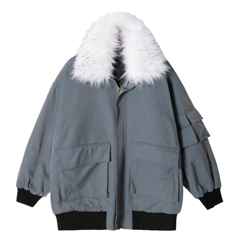 CHIC ERRO Fur collar hooded cotton coat men's loose thicker haze blue coat men's winter