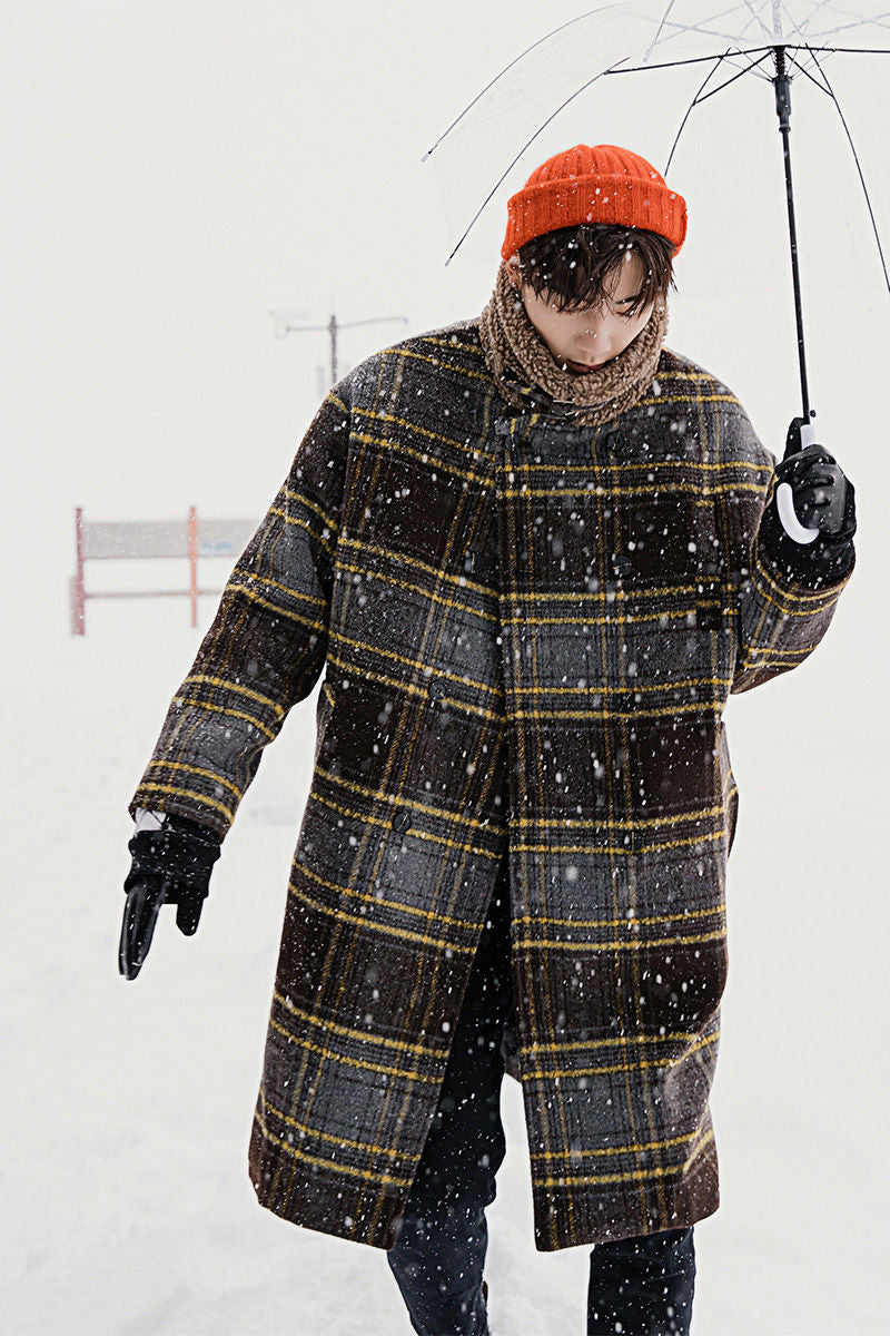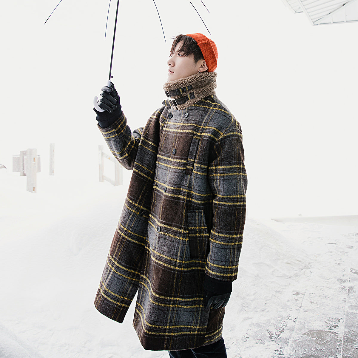 CHIC ERRO Lamb wool plaid mid-length woolen coat winter men's woolen coat
