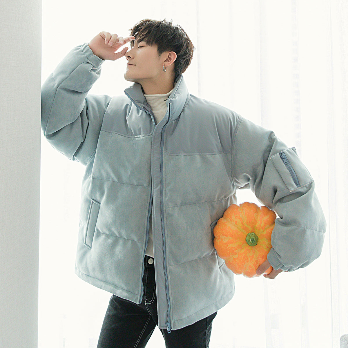 CHIC ERRO Men's deerskin velvet stitching loose thickened stand-up collar cotton jacket men's winter