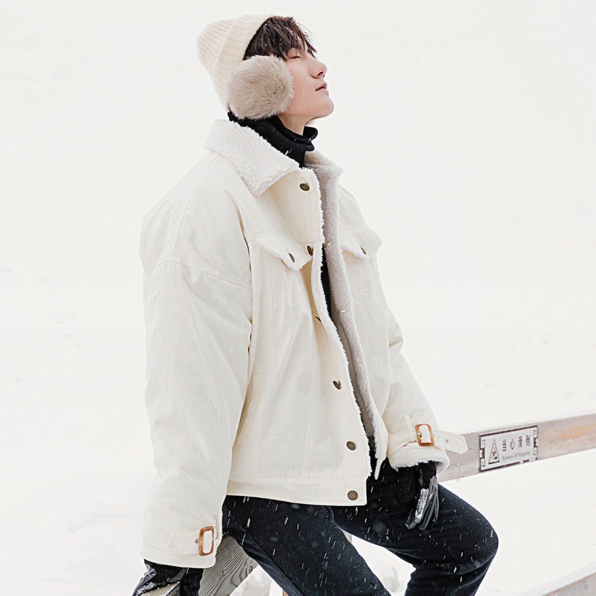 CHIC ERRO White loose casual padded lamb wool coat jacket men autumn and winter