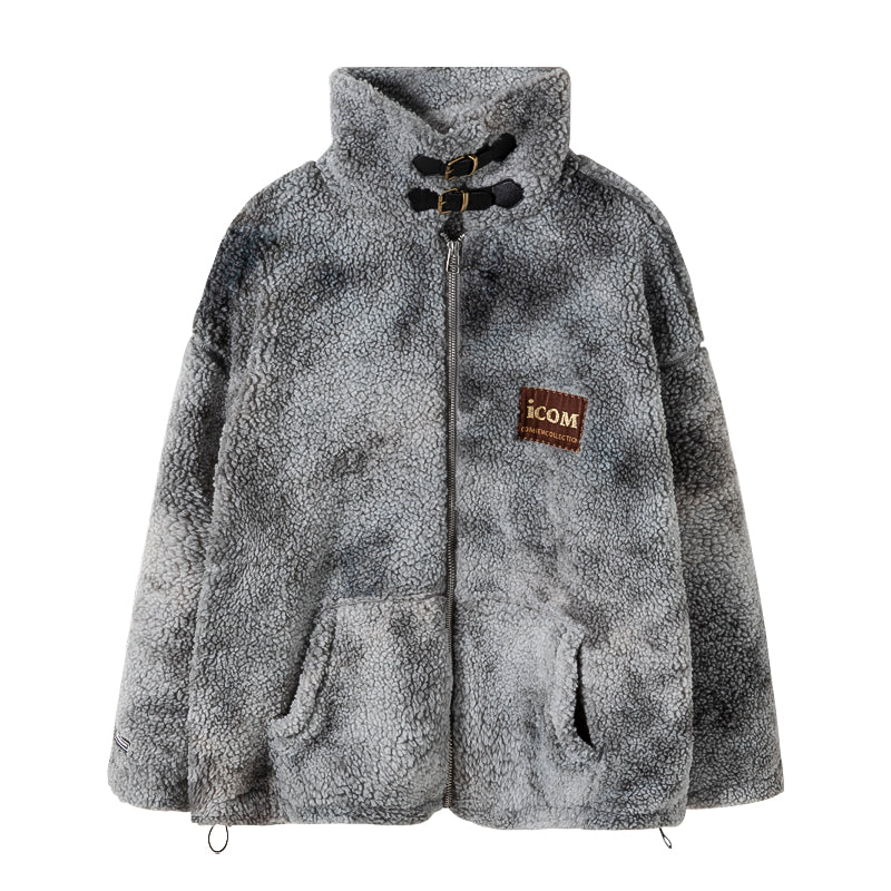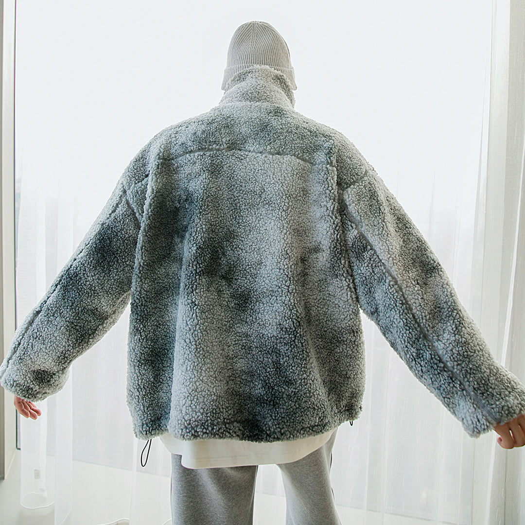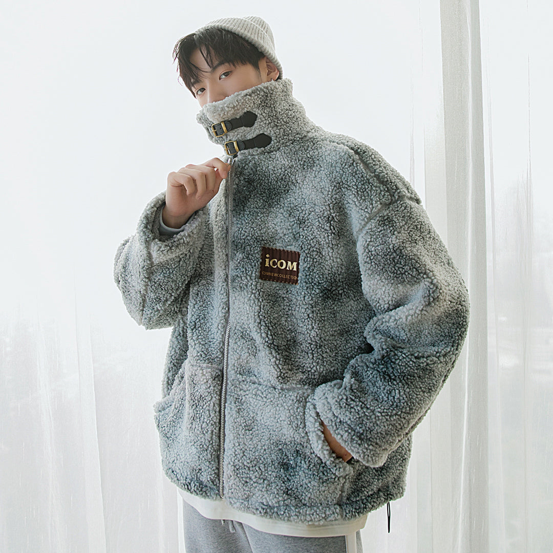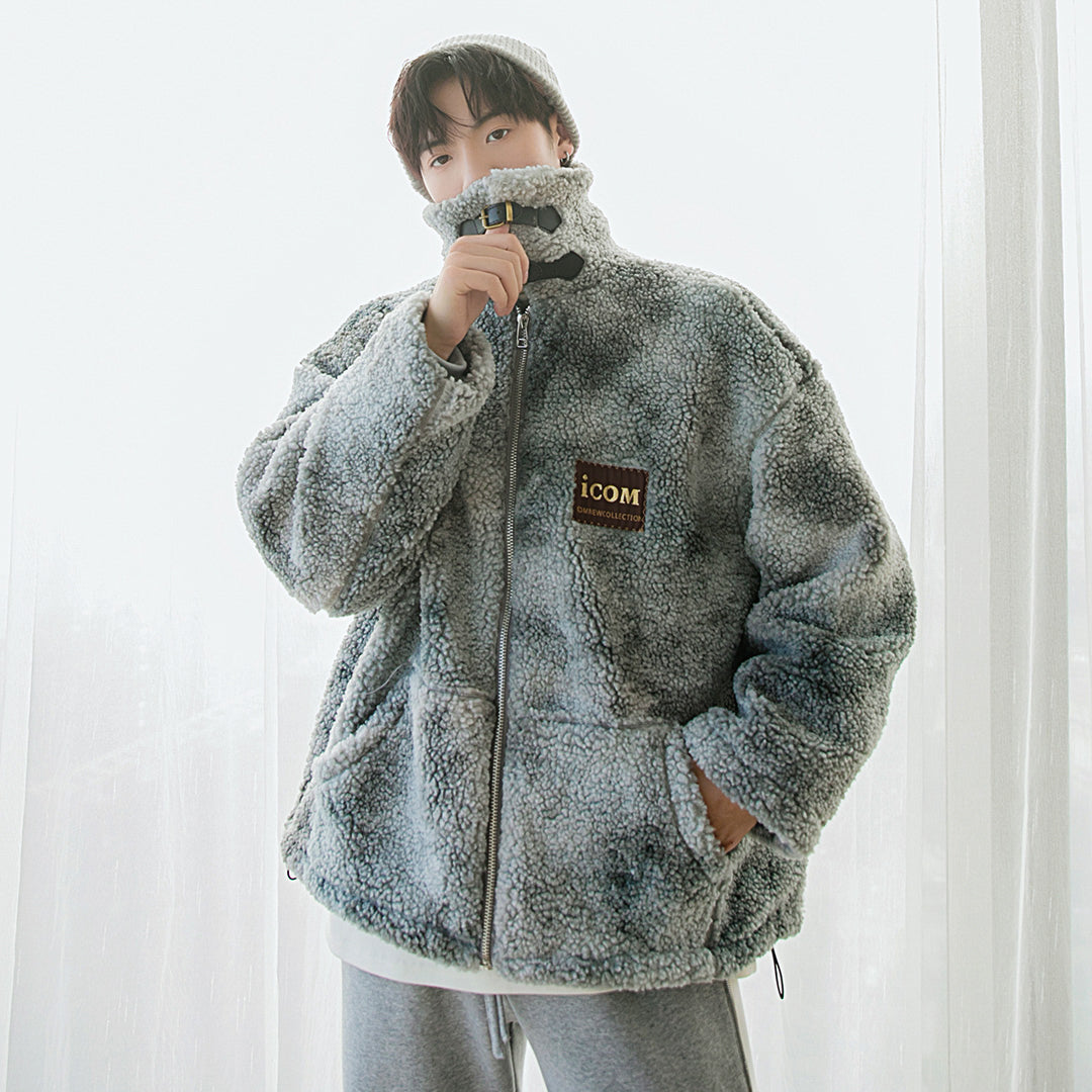 CHIC ERRO Lamb velvet stand-up collar cotton-padded jacket with embroidery loose and thick warm men's tie-dye jacket