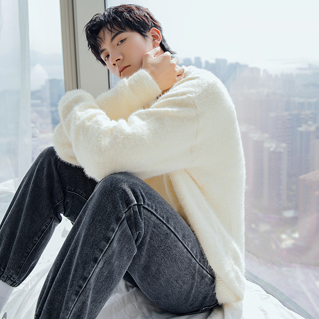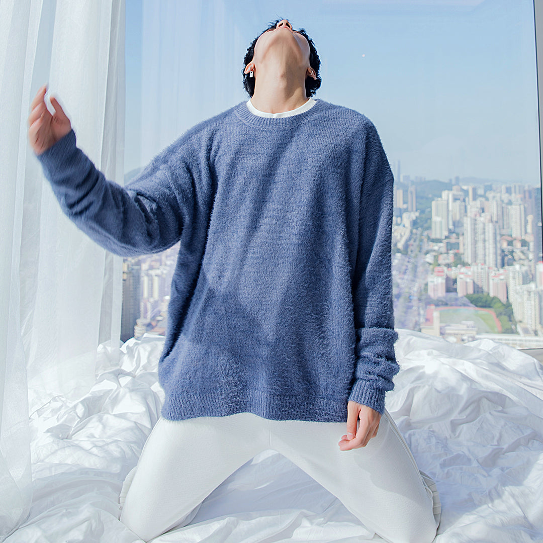 CHIC ERRO Round neck lazy style long-sleeved pure color mohair loose casual new pullover sweater